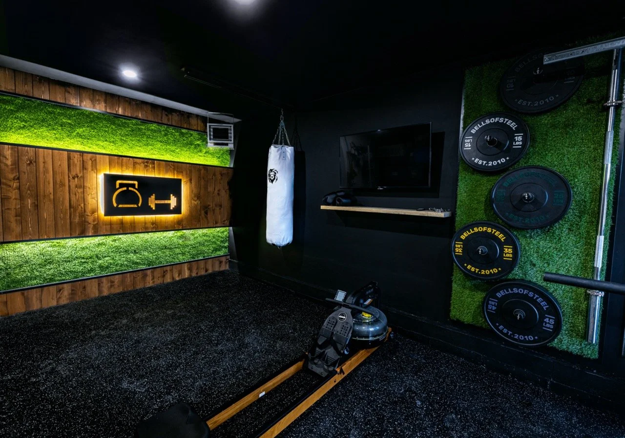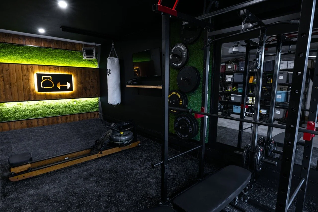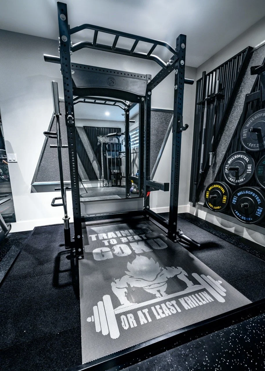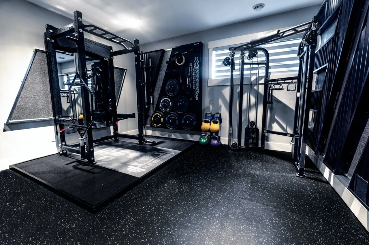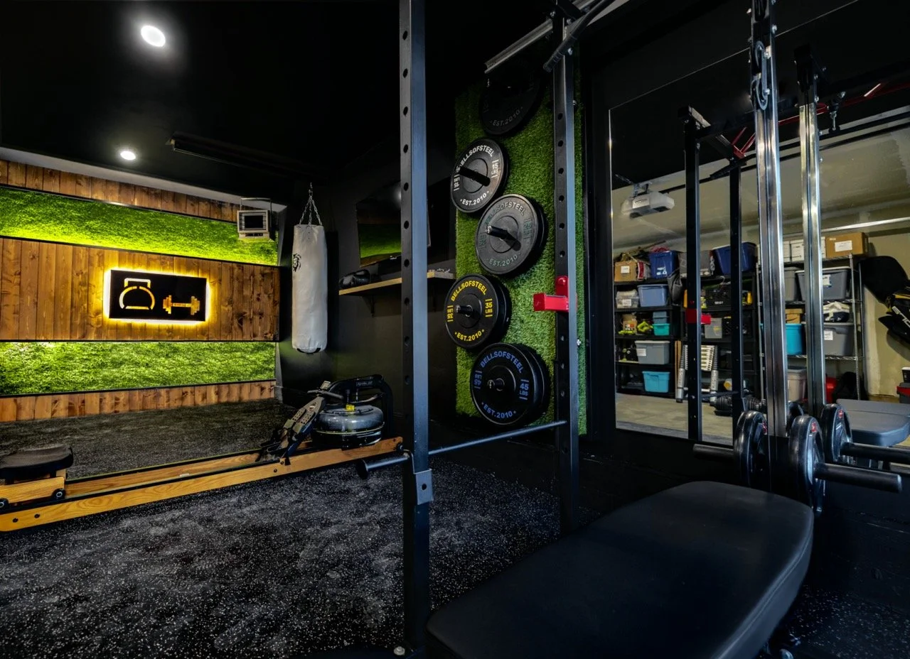 Golden Larch Design’s Home Gym — “The Showroom”, is the showcase for our Original Design option. If you like what you see, let us take the wheel and create a custom home gym unique for your space, with a similar style.