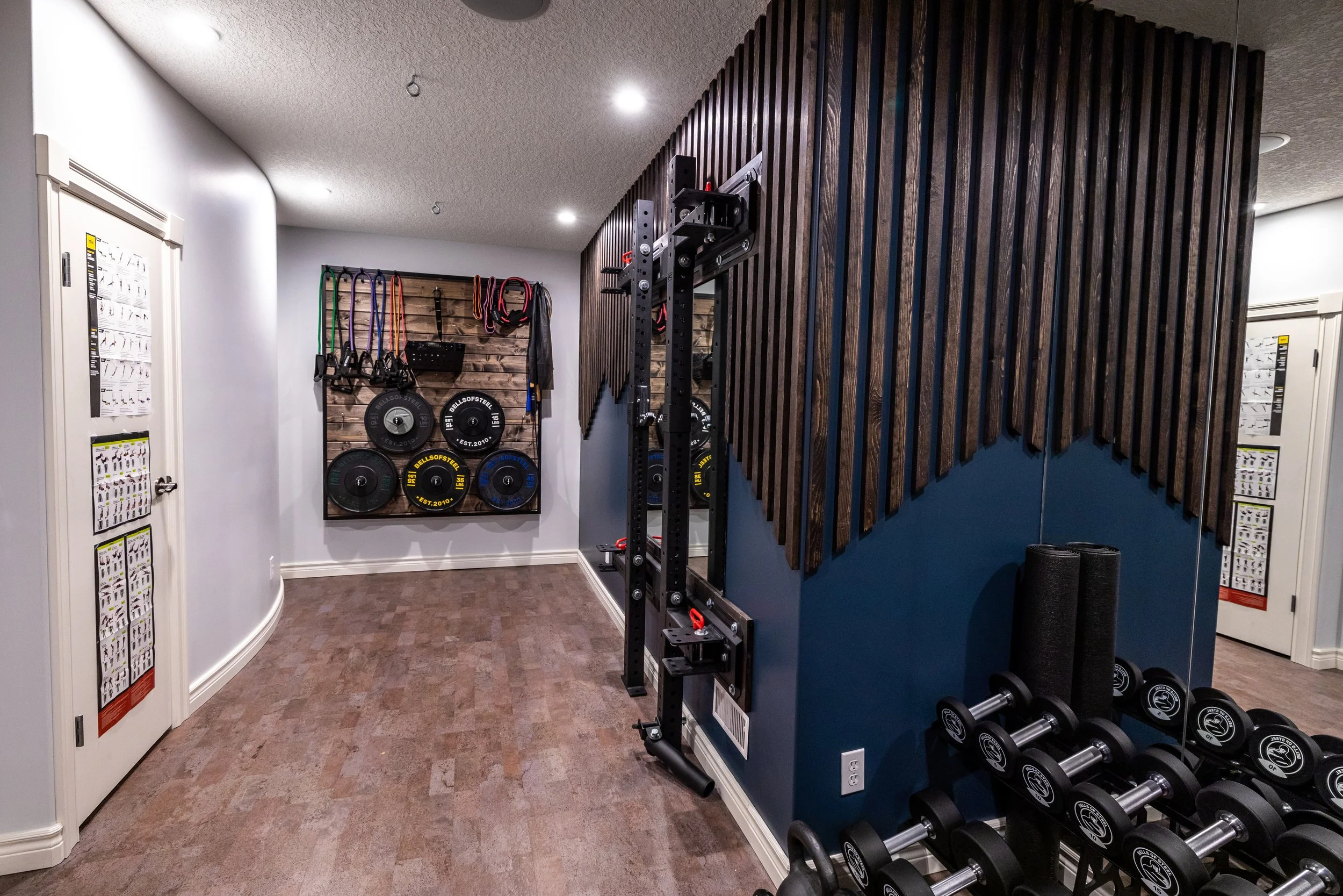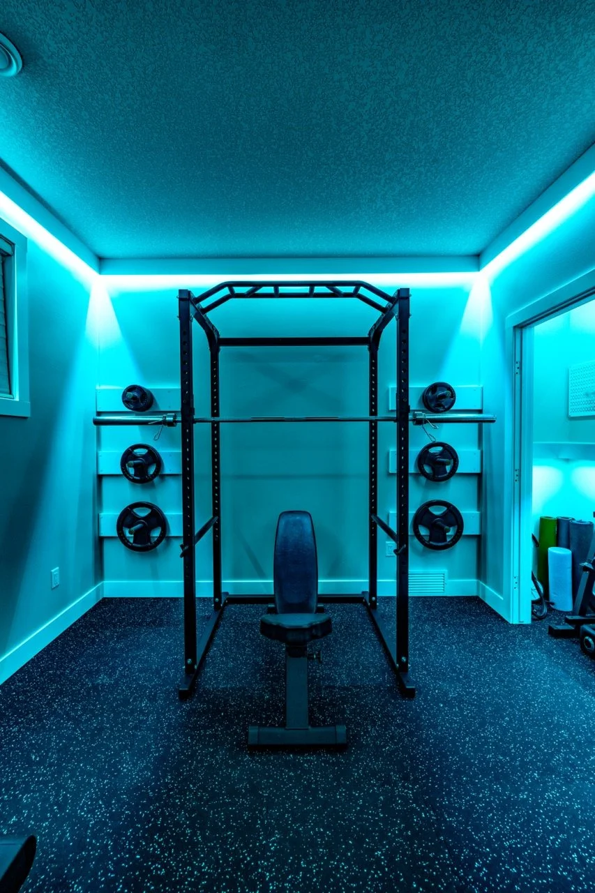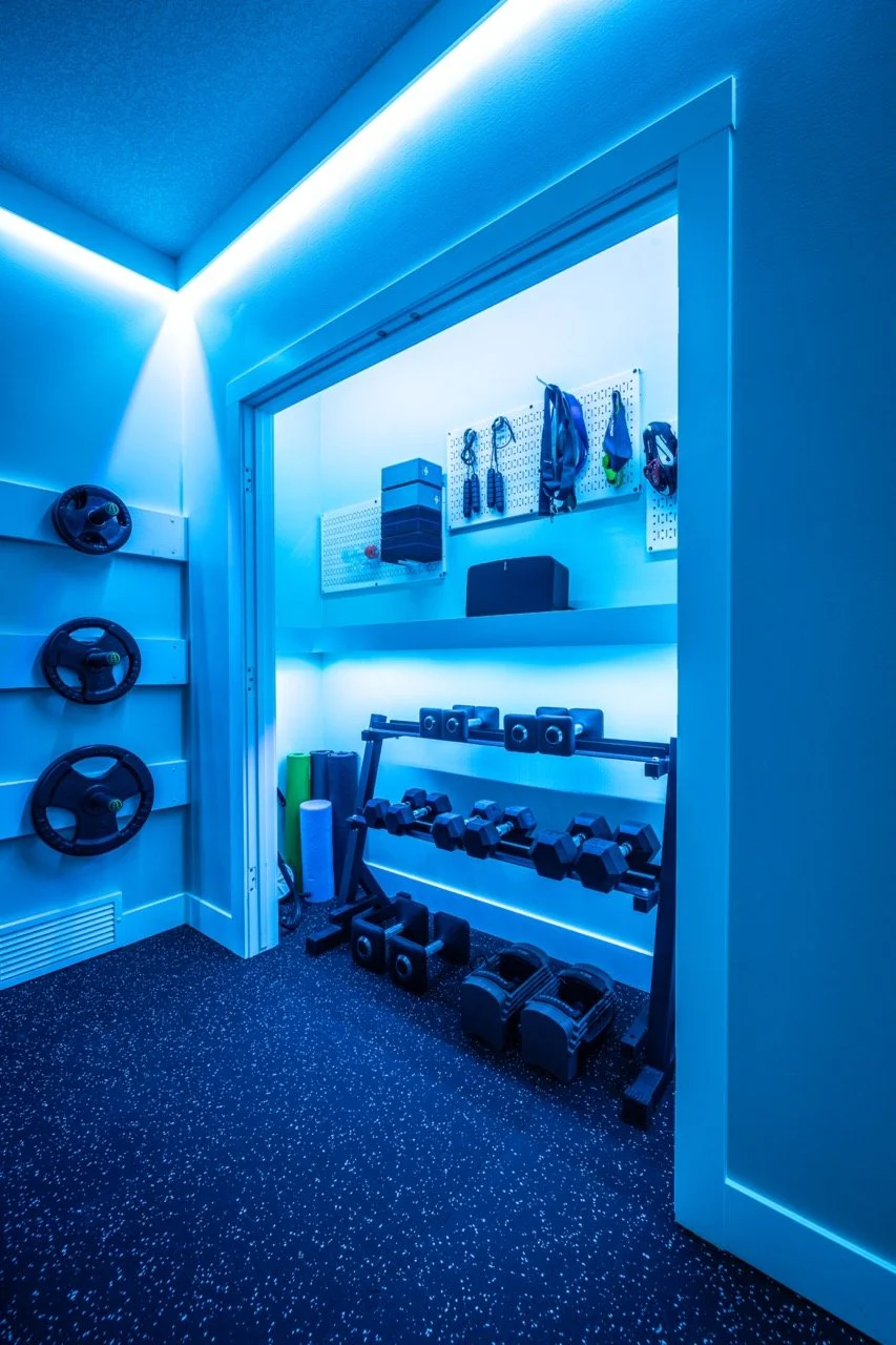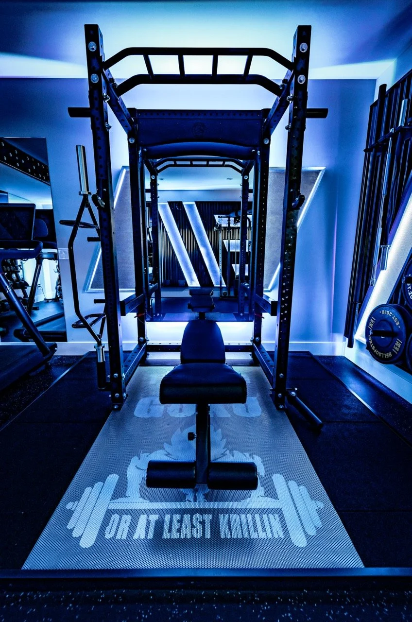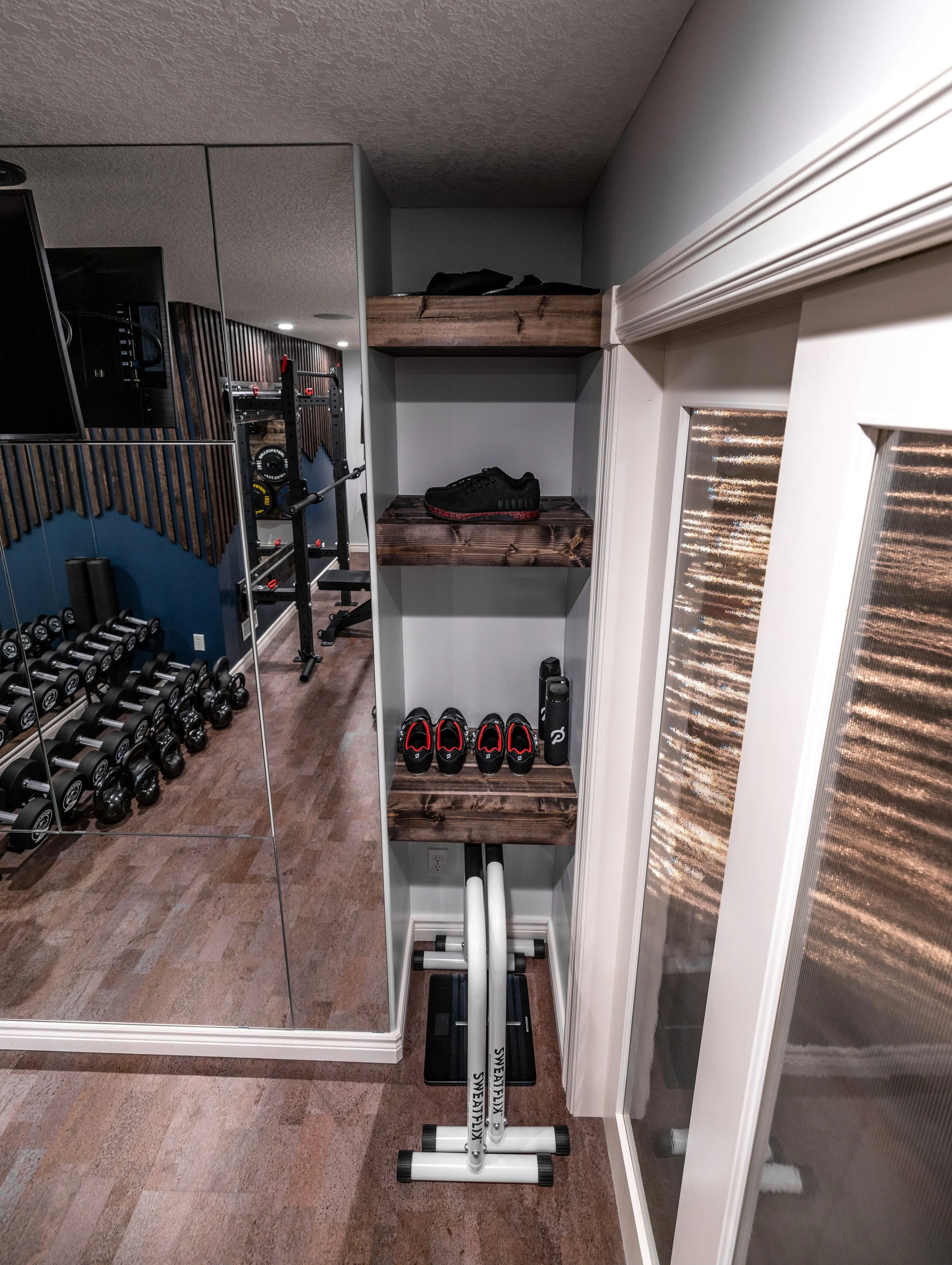 Golden Larch Design’s Home Gym — “The Showroom”, is the showcase for our Original Design option. If you like what you see, let us take the wheel and create a custom home gym unique for your space, with a similar style.