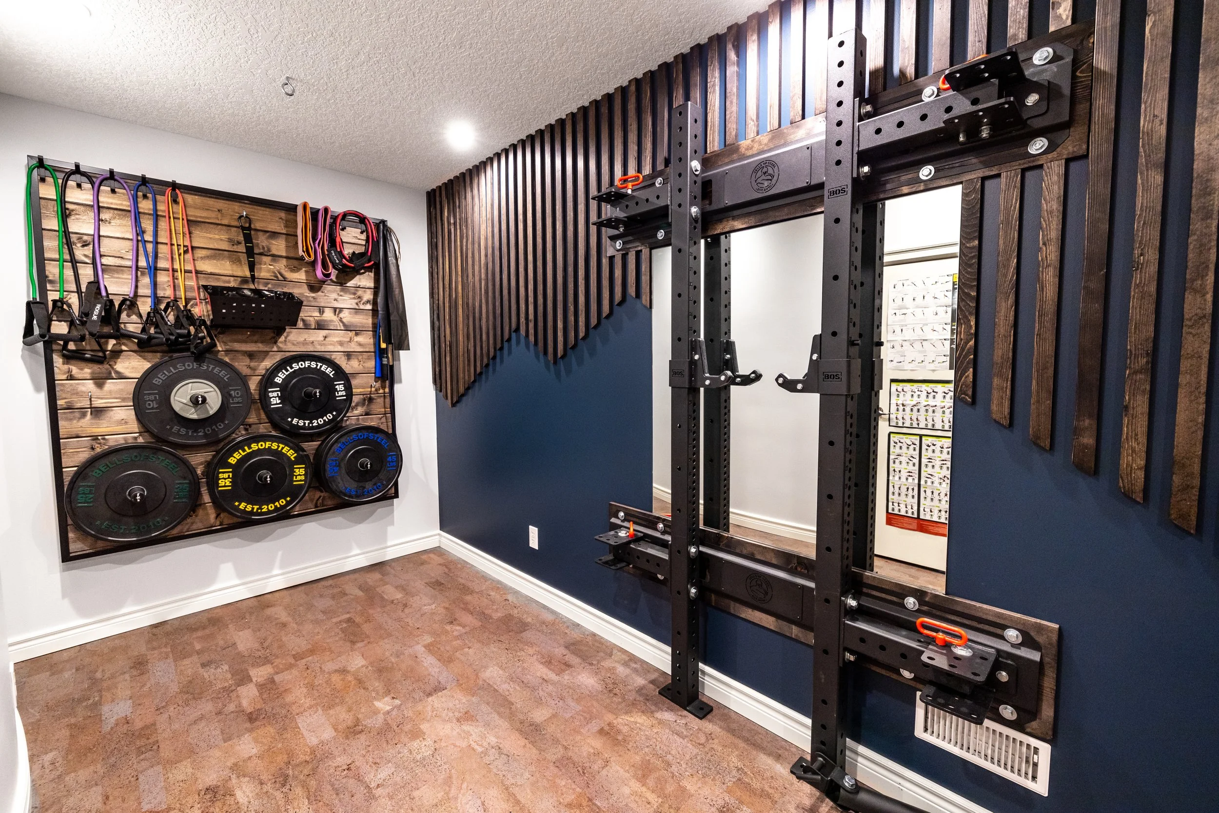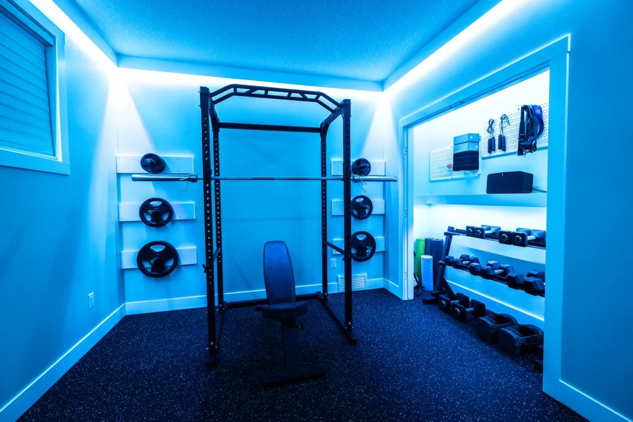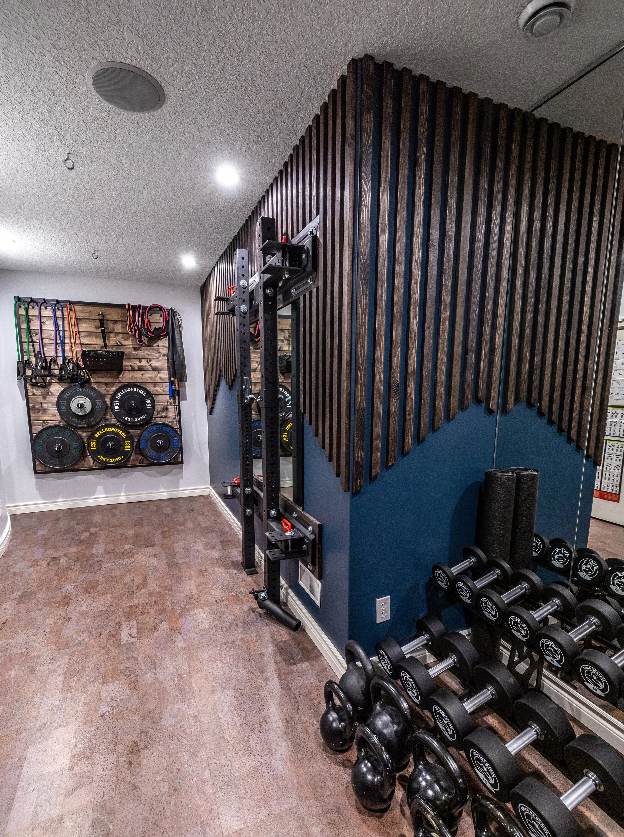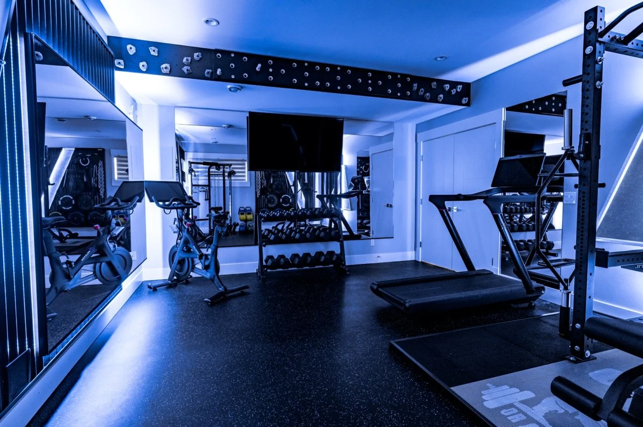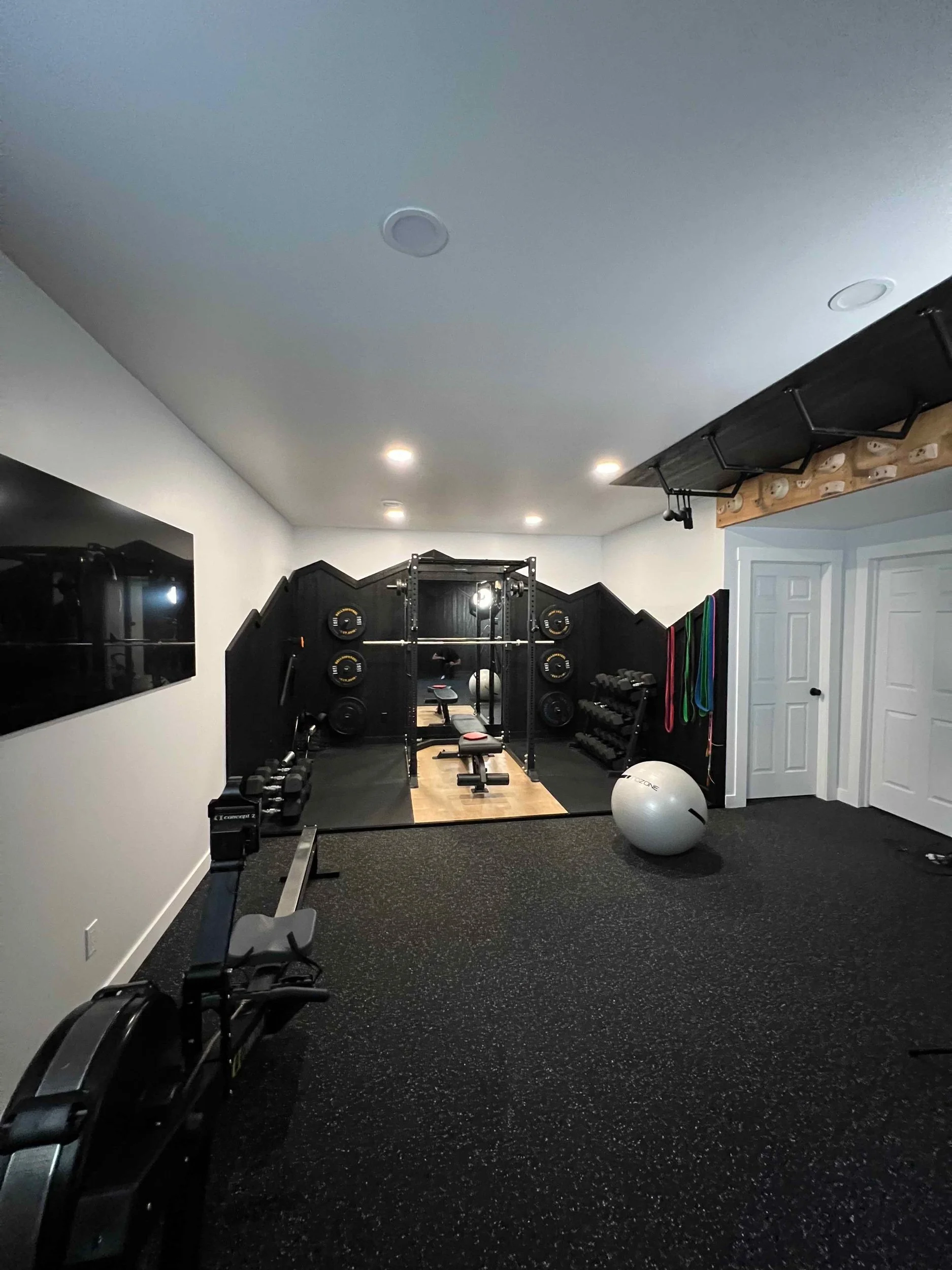 Golden Larch Design’s Home Gym — “The Showroom”, is the showcase for our Original Design option. If you like what you see, let us take the wheel and create a custom home gym unique for your space, with a similar style.