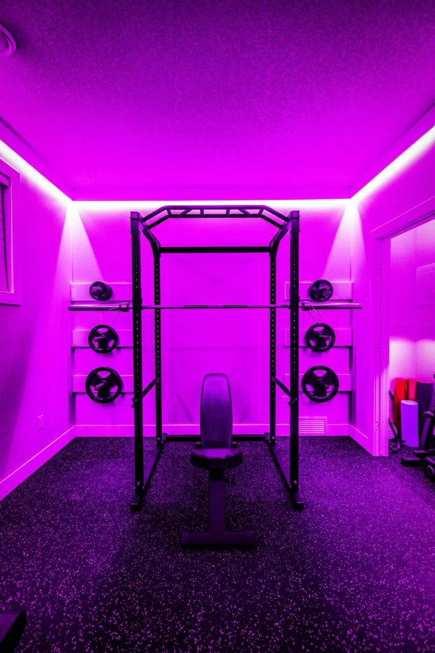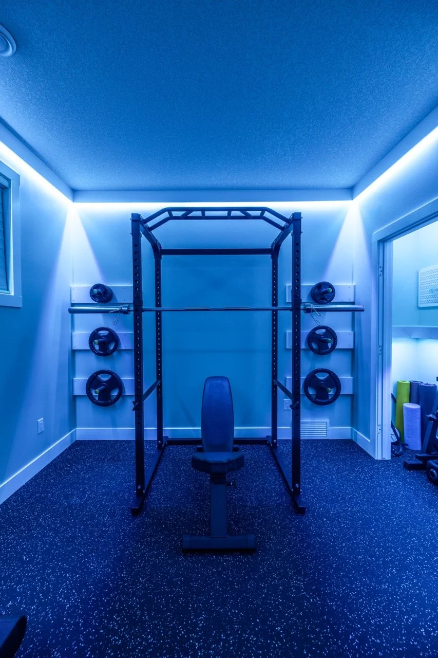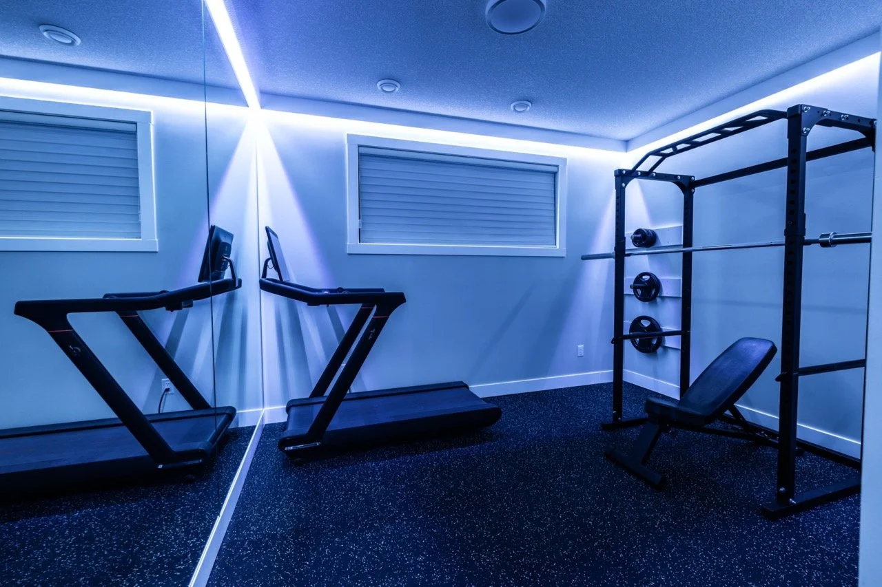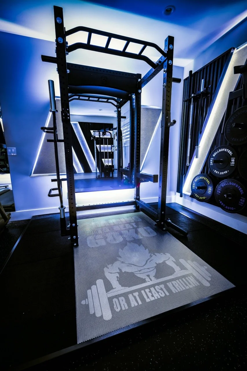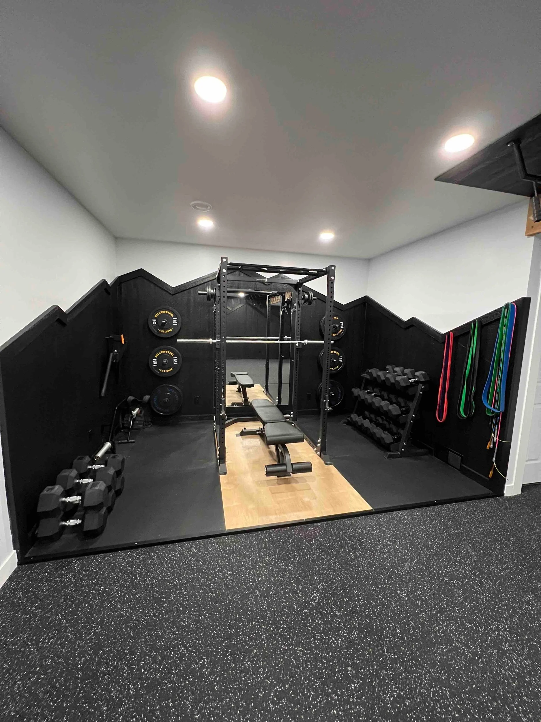 Golden Larch Design’s Home Gym — “The Showroom”, is the showcase for our Original Design option. If you like what you see, let us take the wheel and create a custom home gym unique for your space, with a similar style.