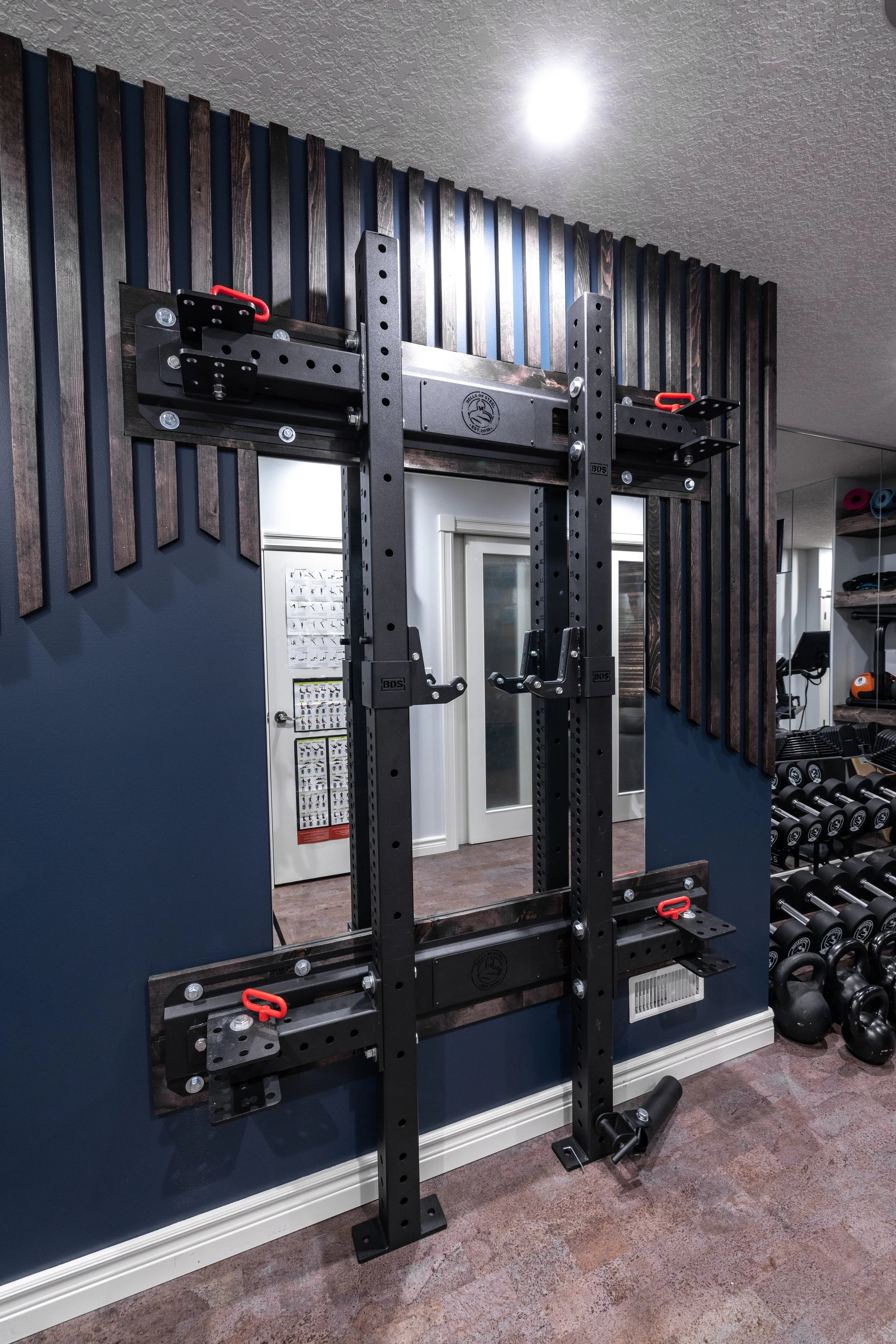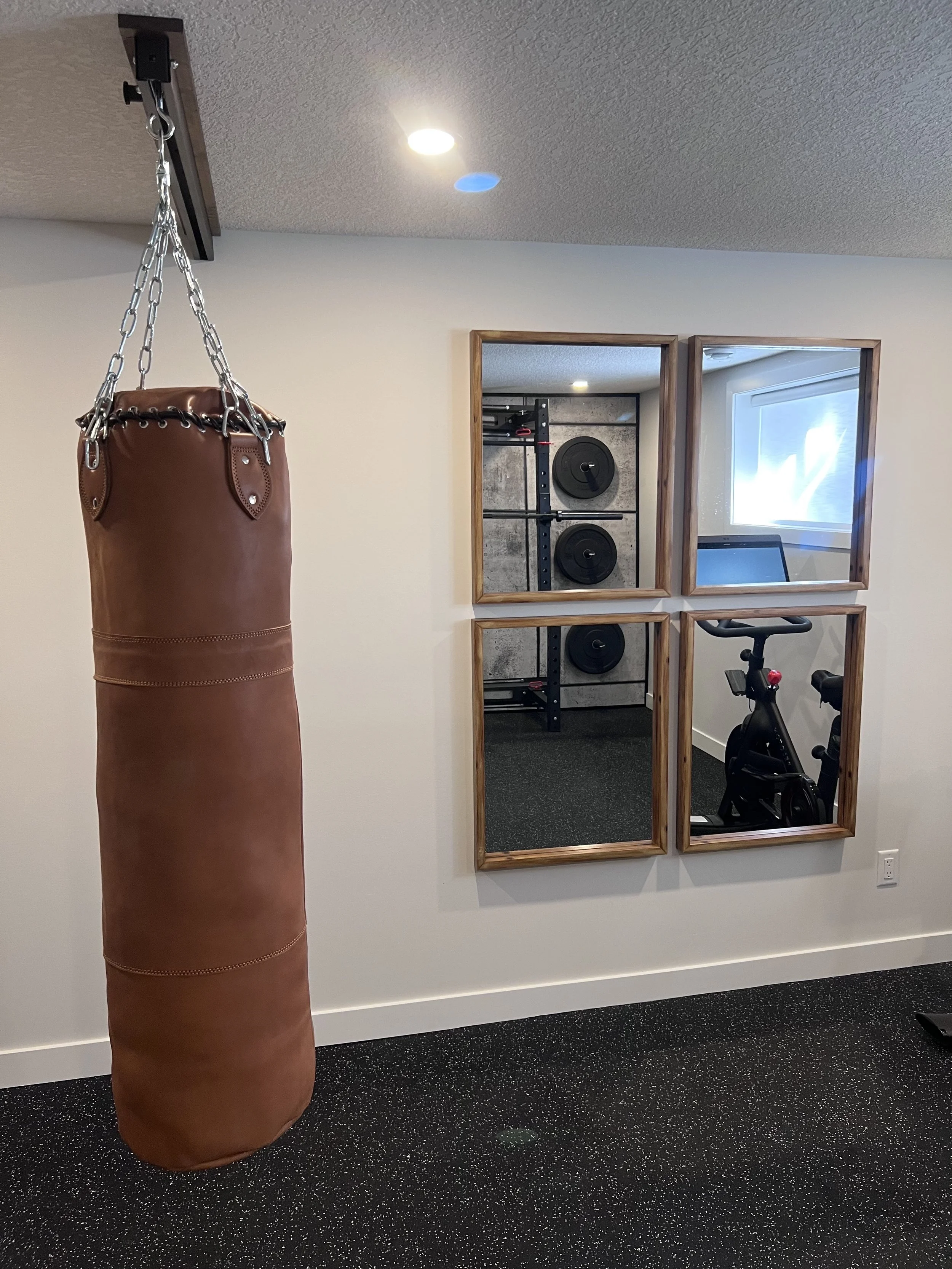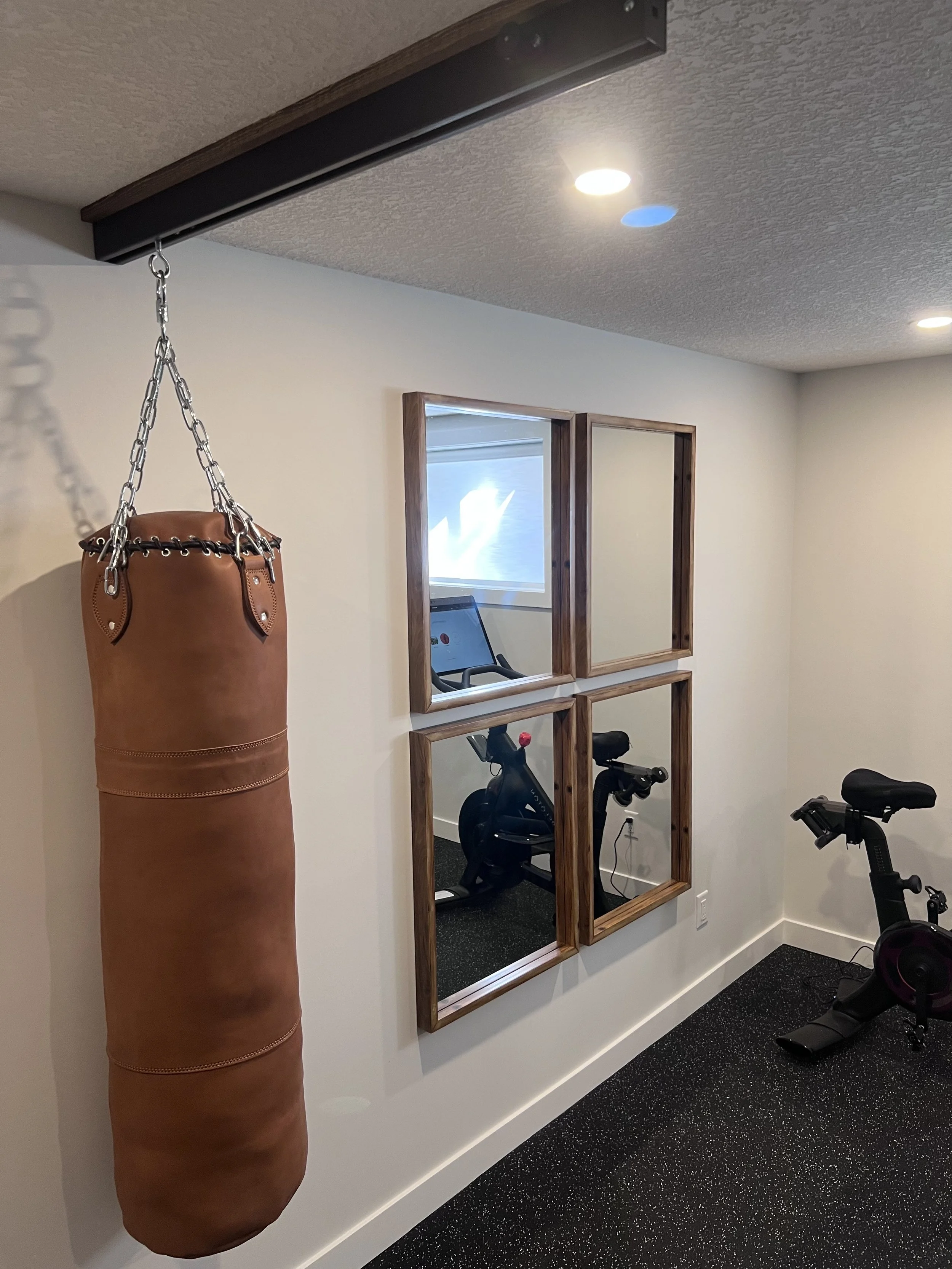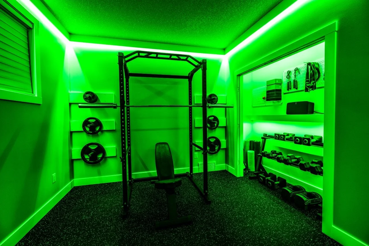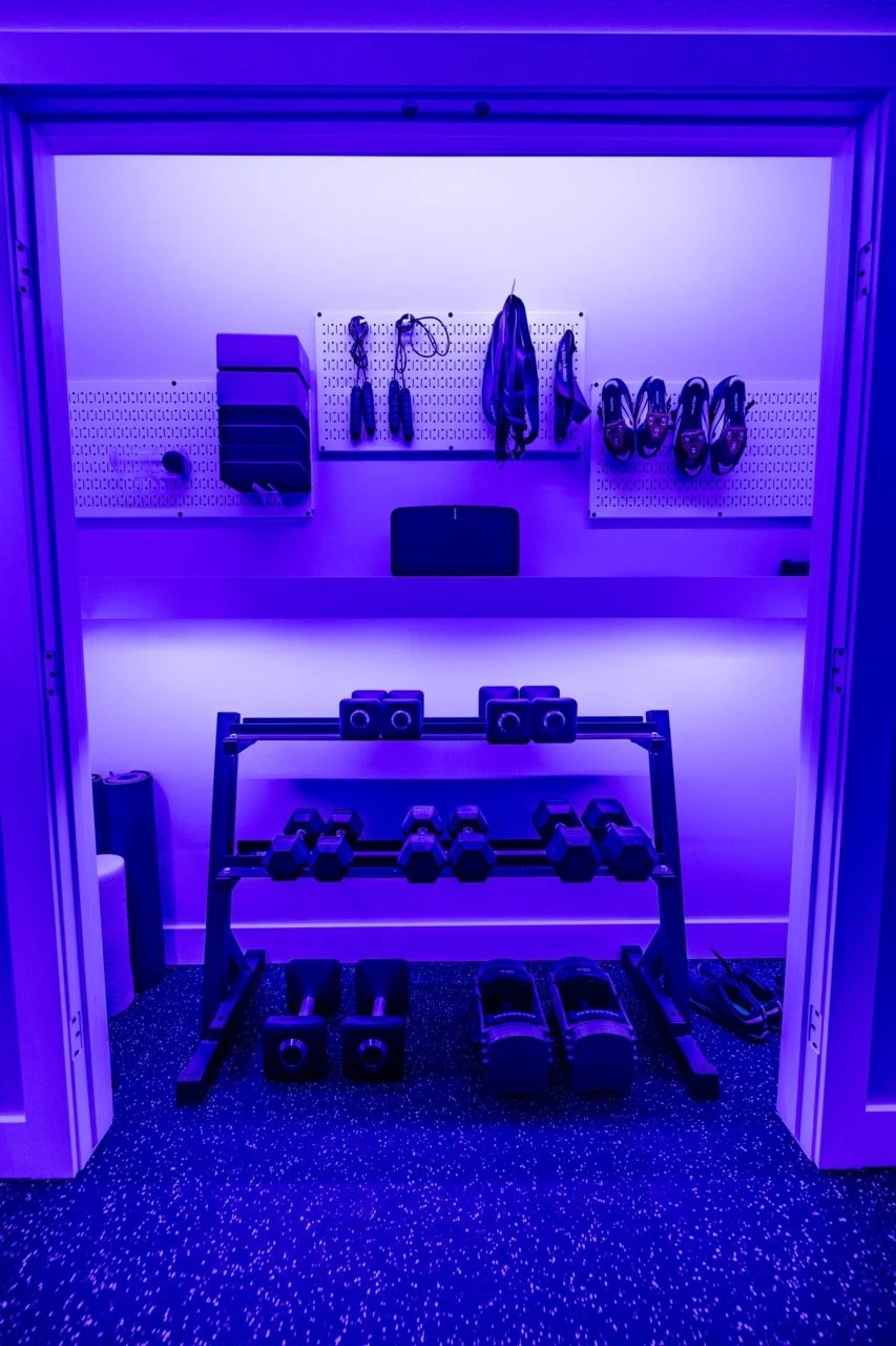 Golden Larch Design’s Home Gym — “The Showroom”, is the showcase for our Original Design option. If you like what you see, let us take the wheel and create a custom home gym unique for your space, with a similar style.