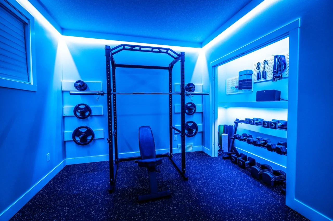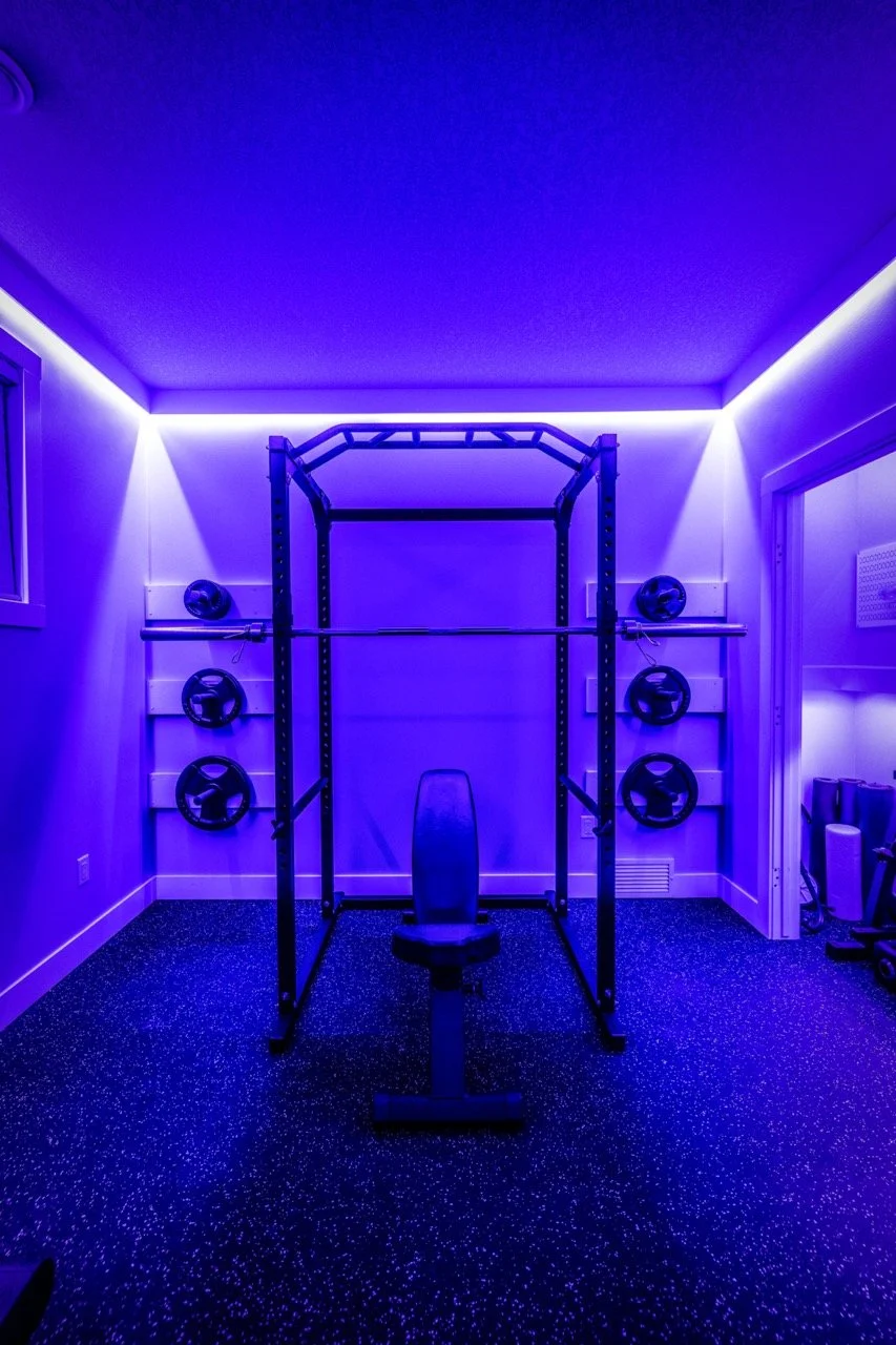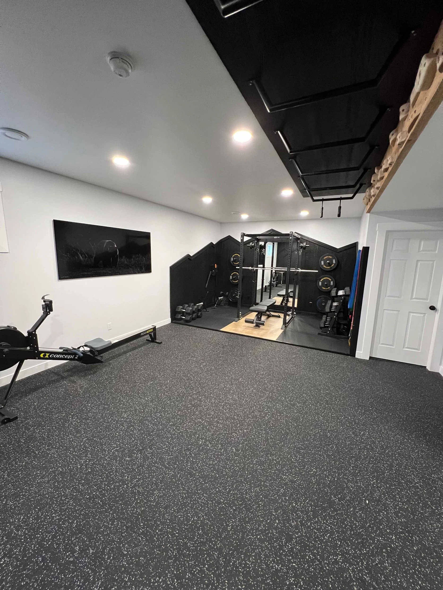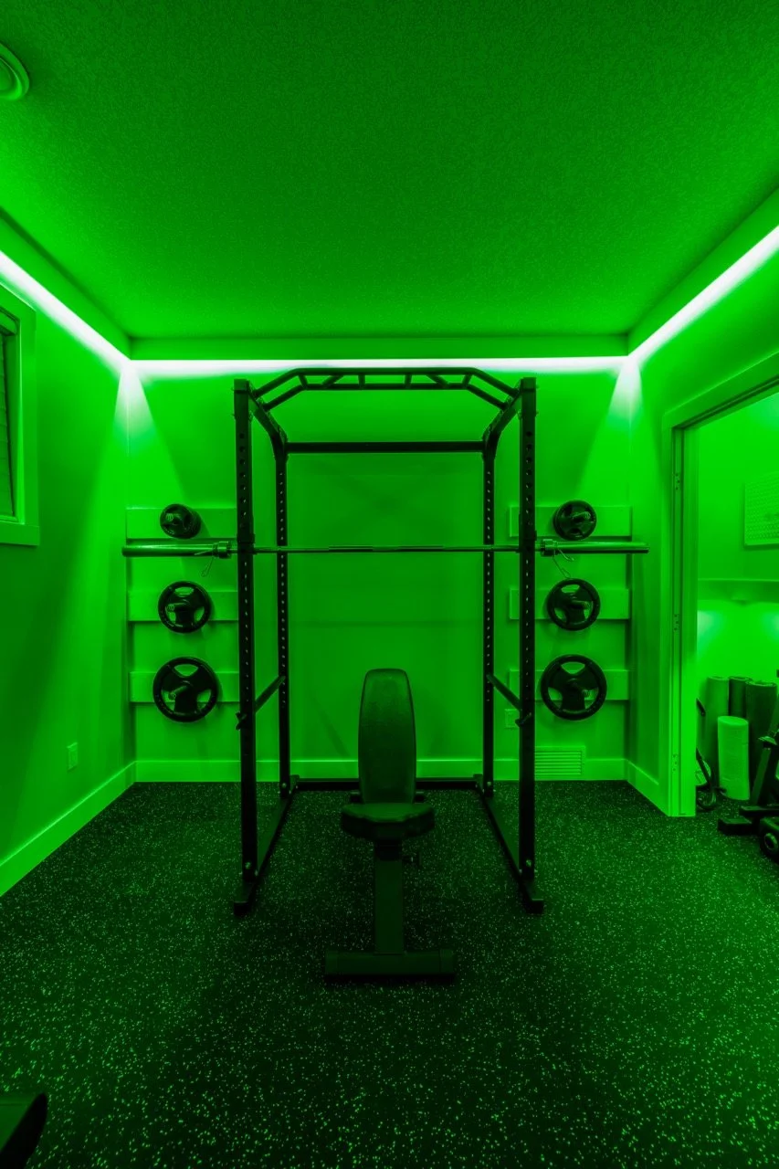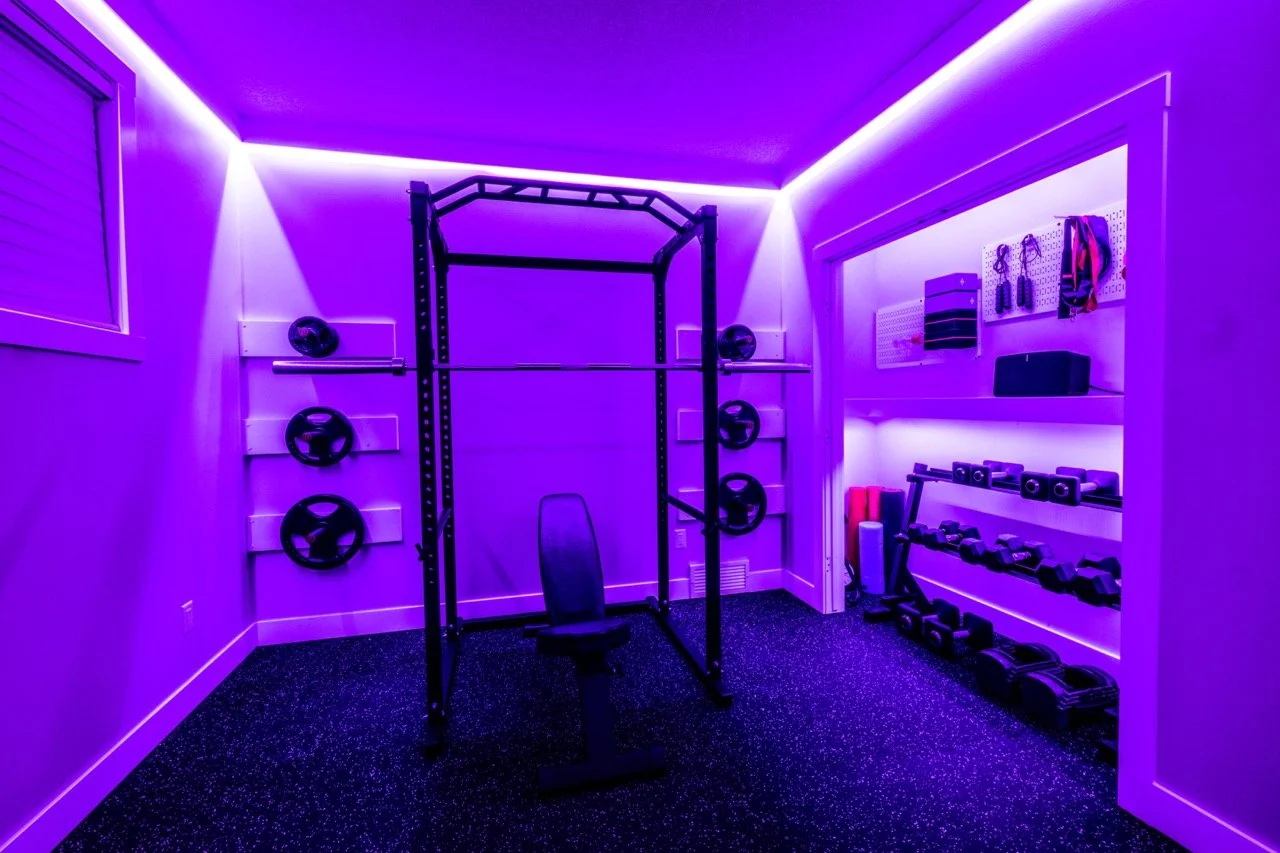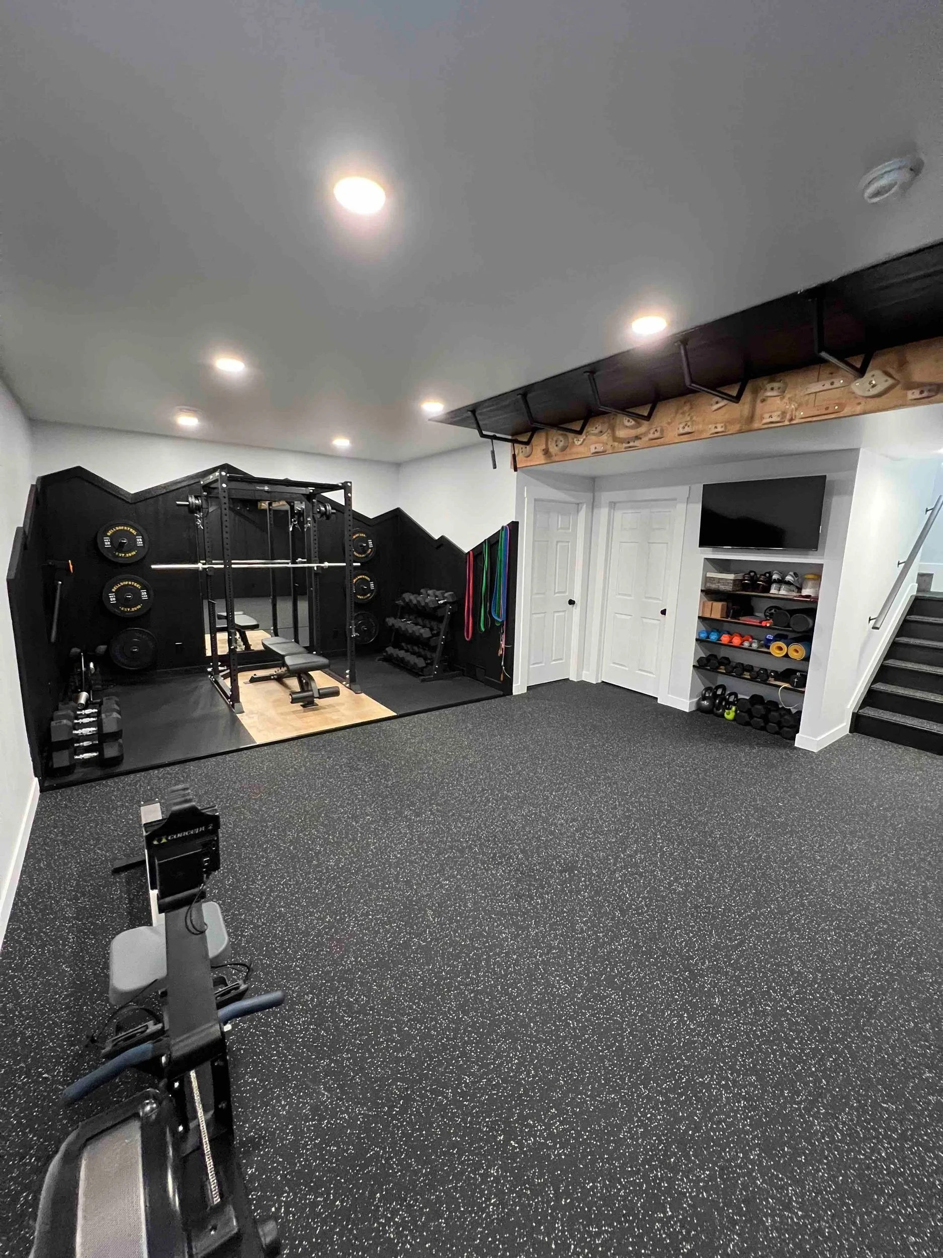 Golden Larch Design’s Home Gym — “The Showroom”, is the showcase for our Original Design option. If you like what you see, let us take the wheel and create a custom home gym unique for your space, with a similar style.
