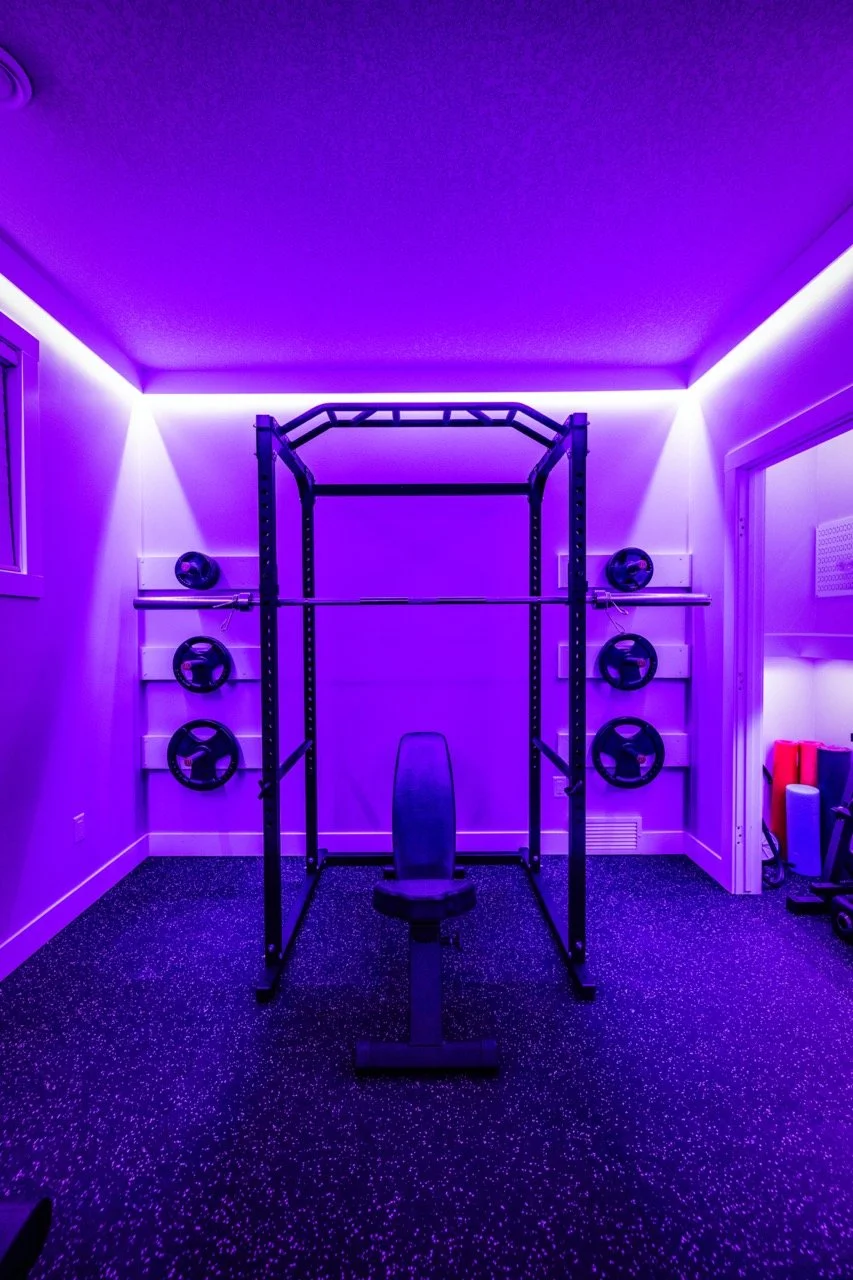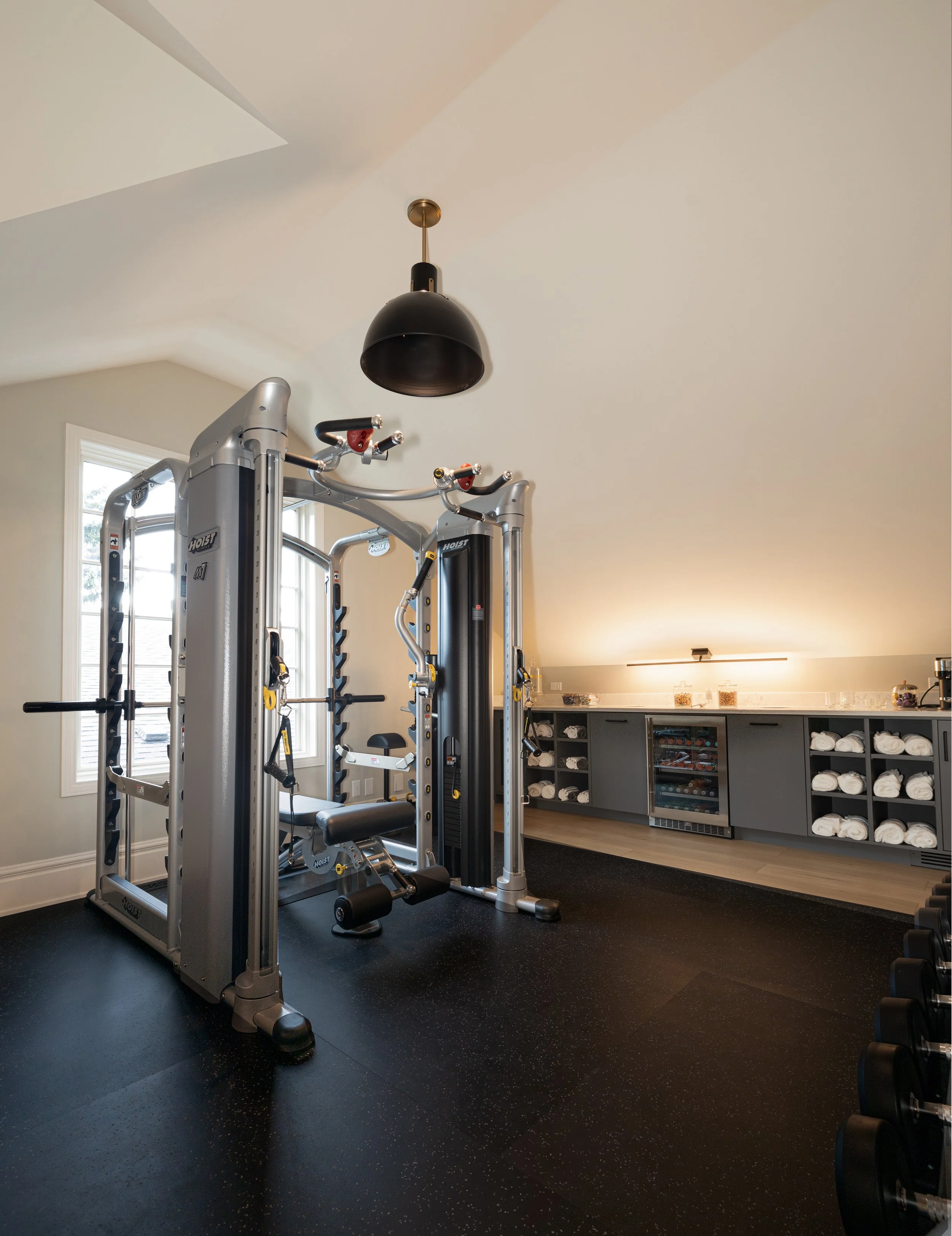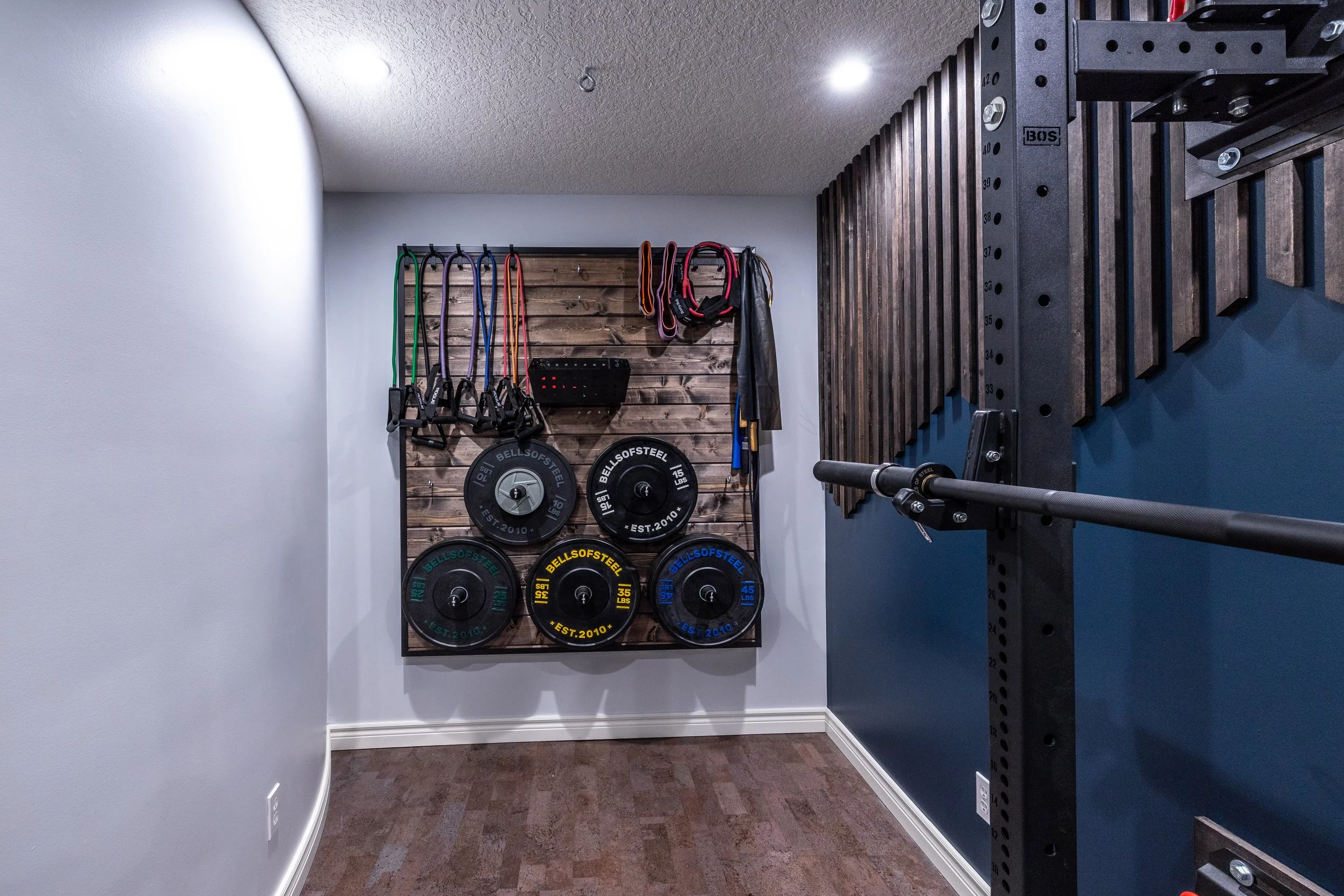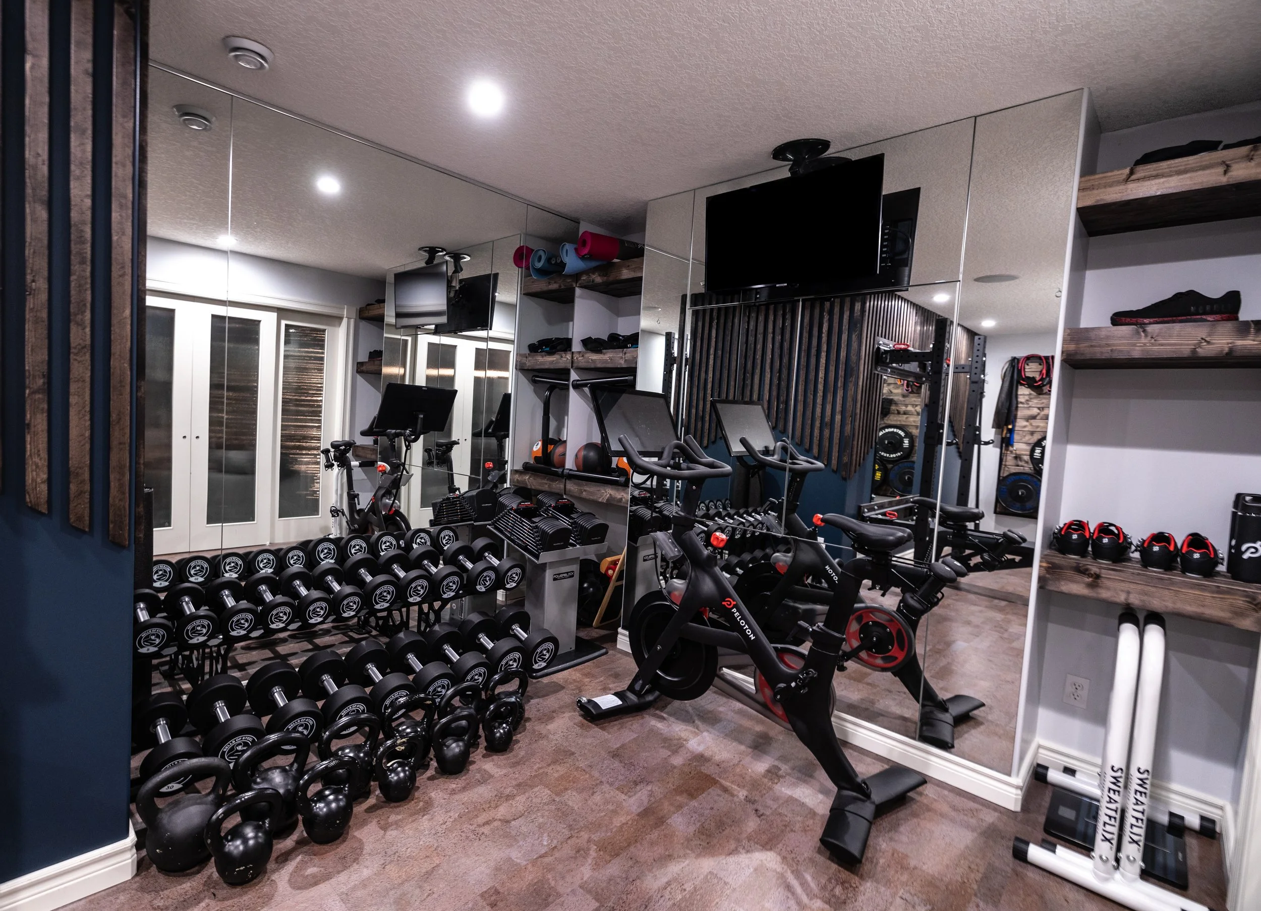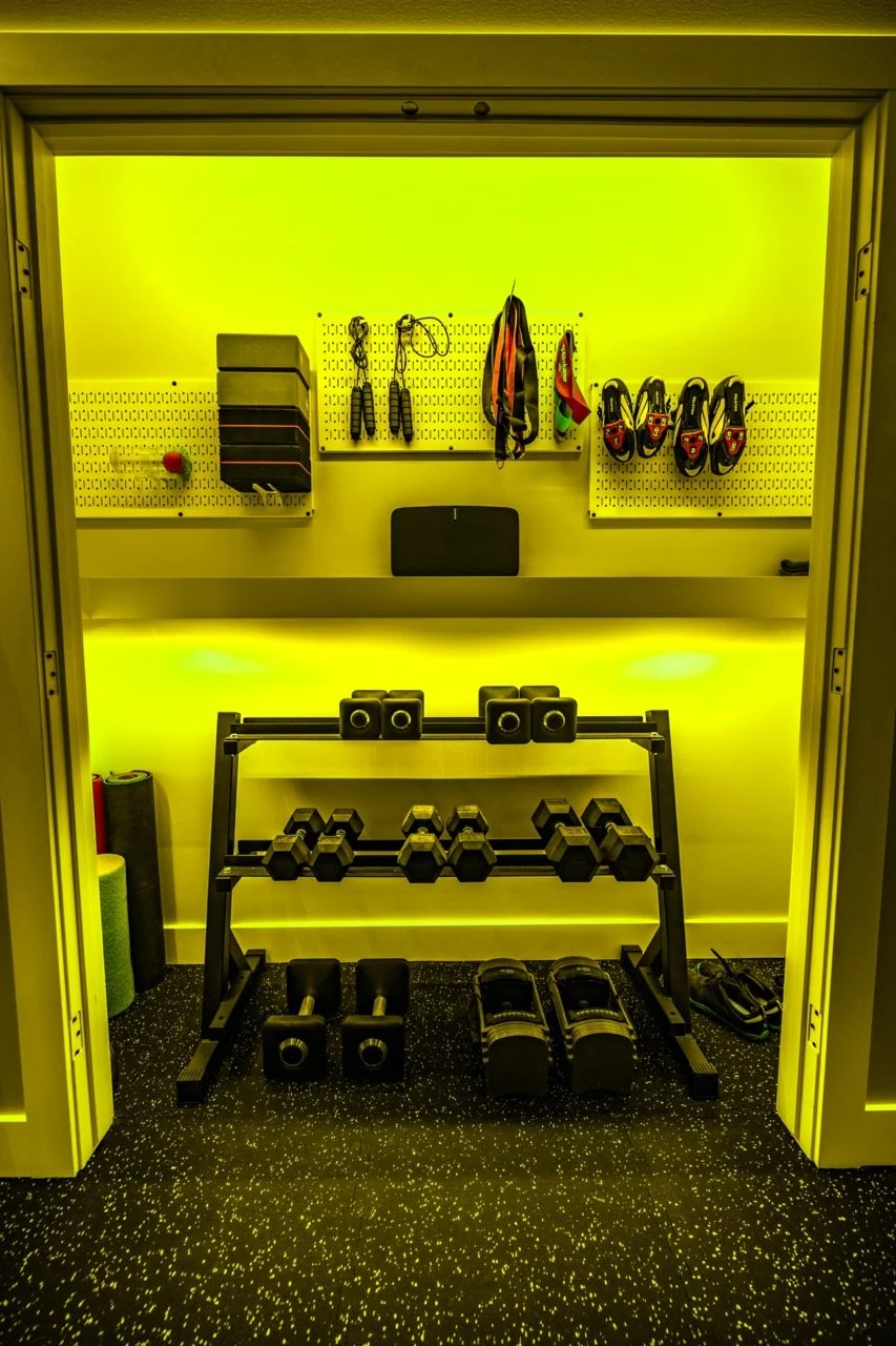 Golden Larch Design’s Home Gym — “The Showroom”, is the showcase for our Original Design option. If you like what you see, let us take the wheel and create a custom home gym unique for your space, with a similar style.
