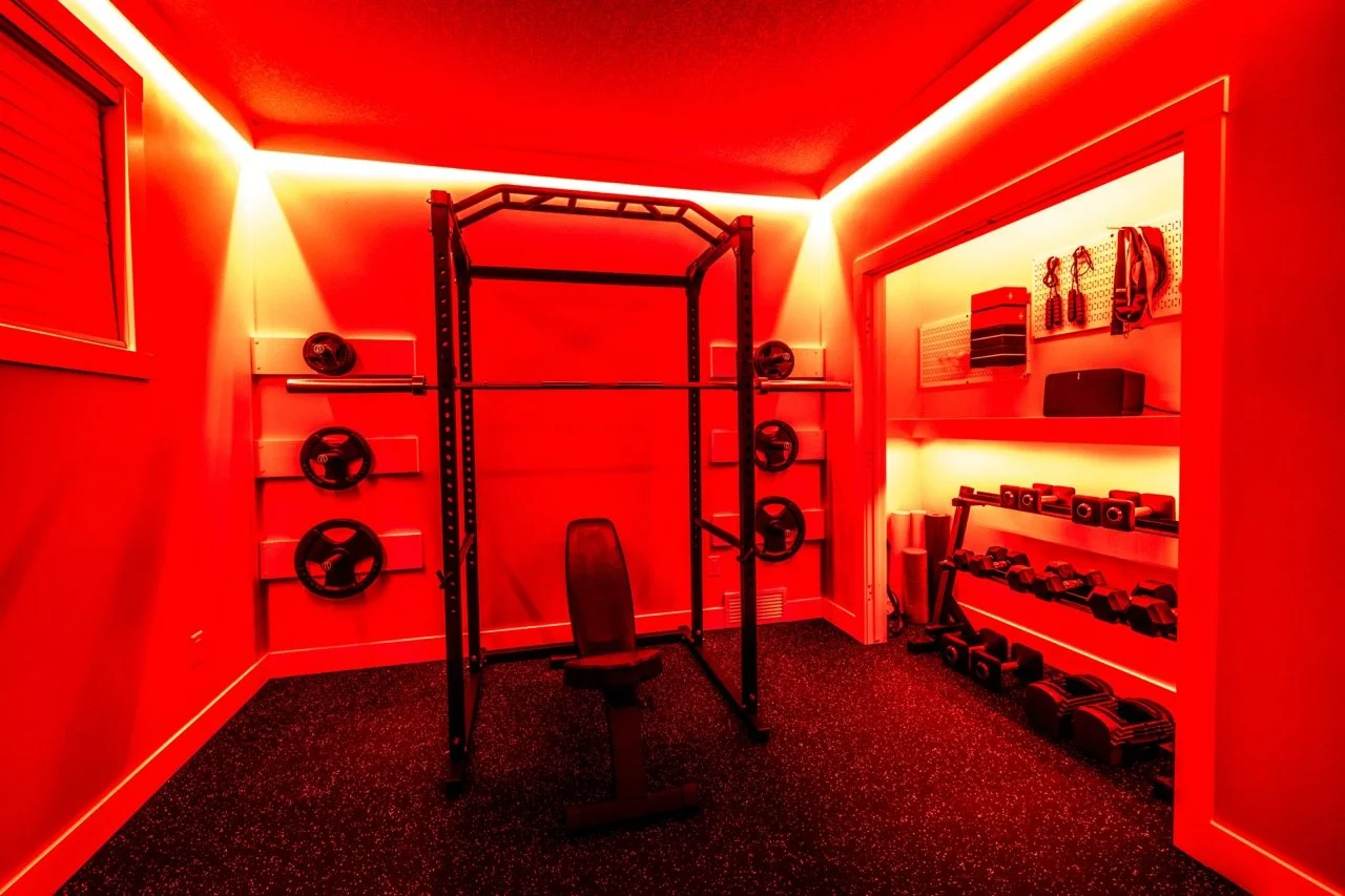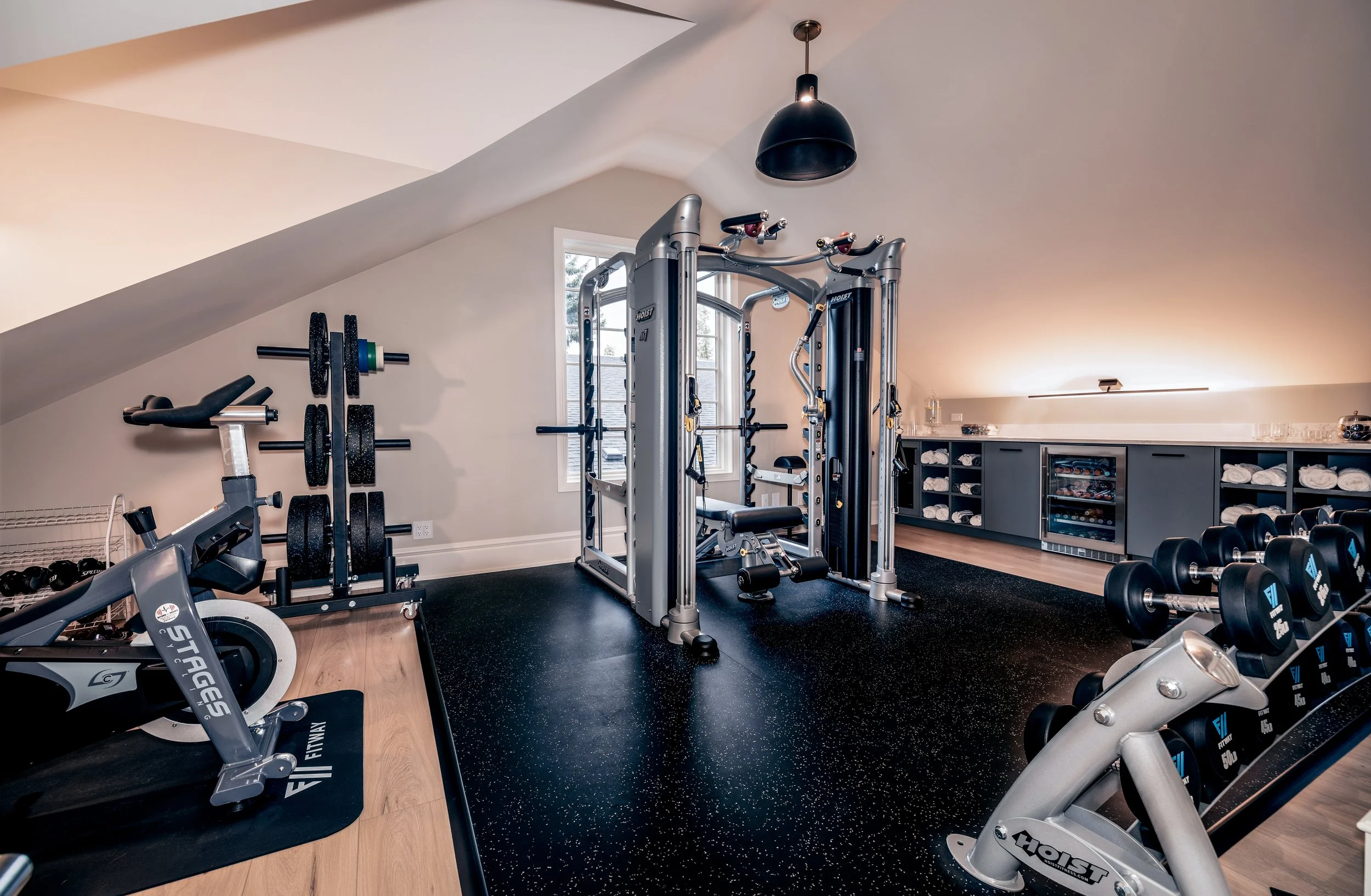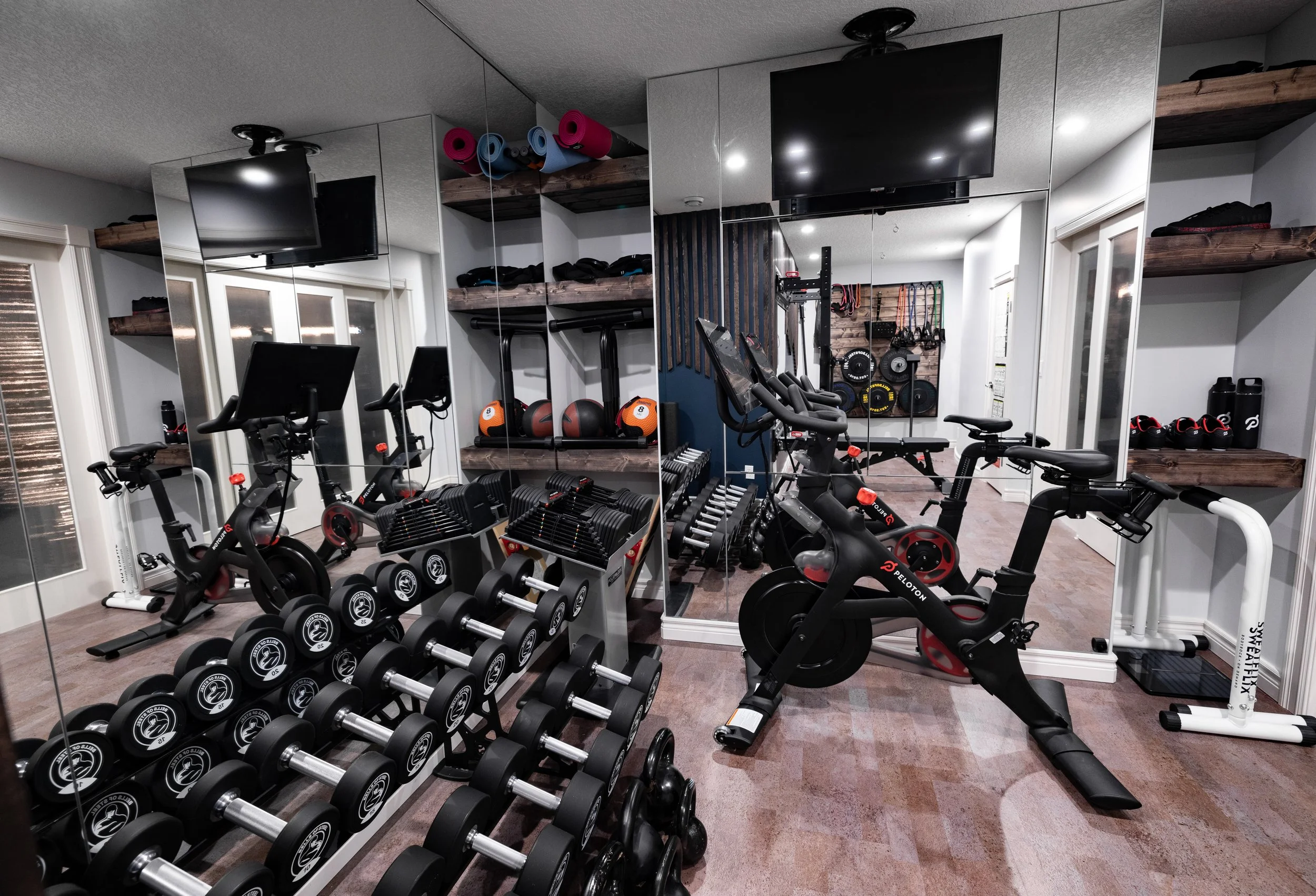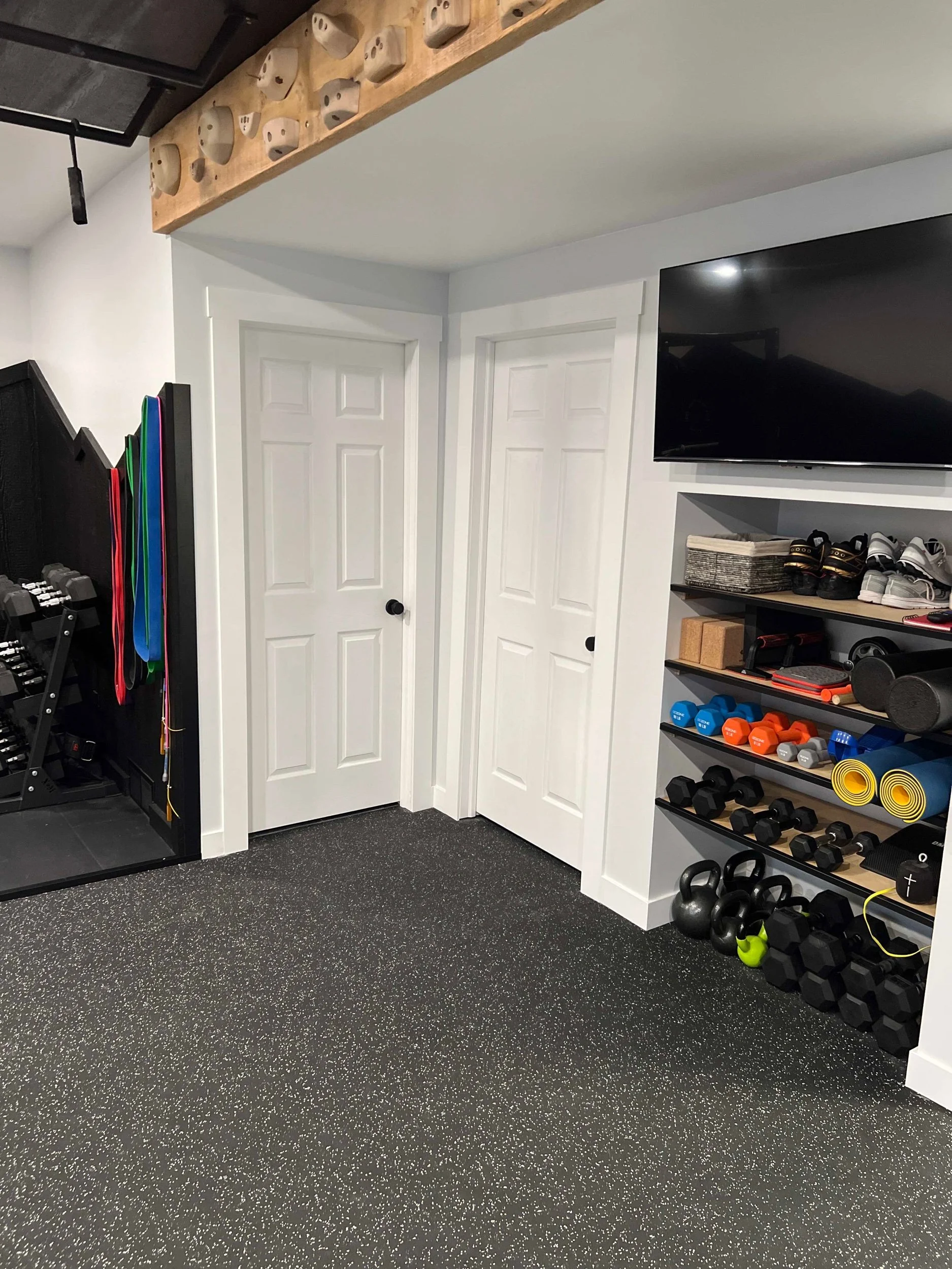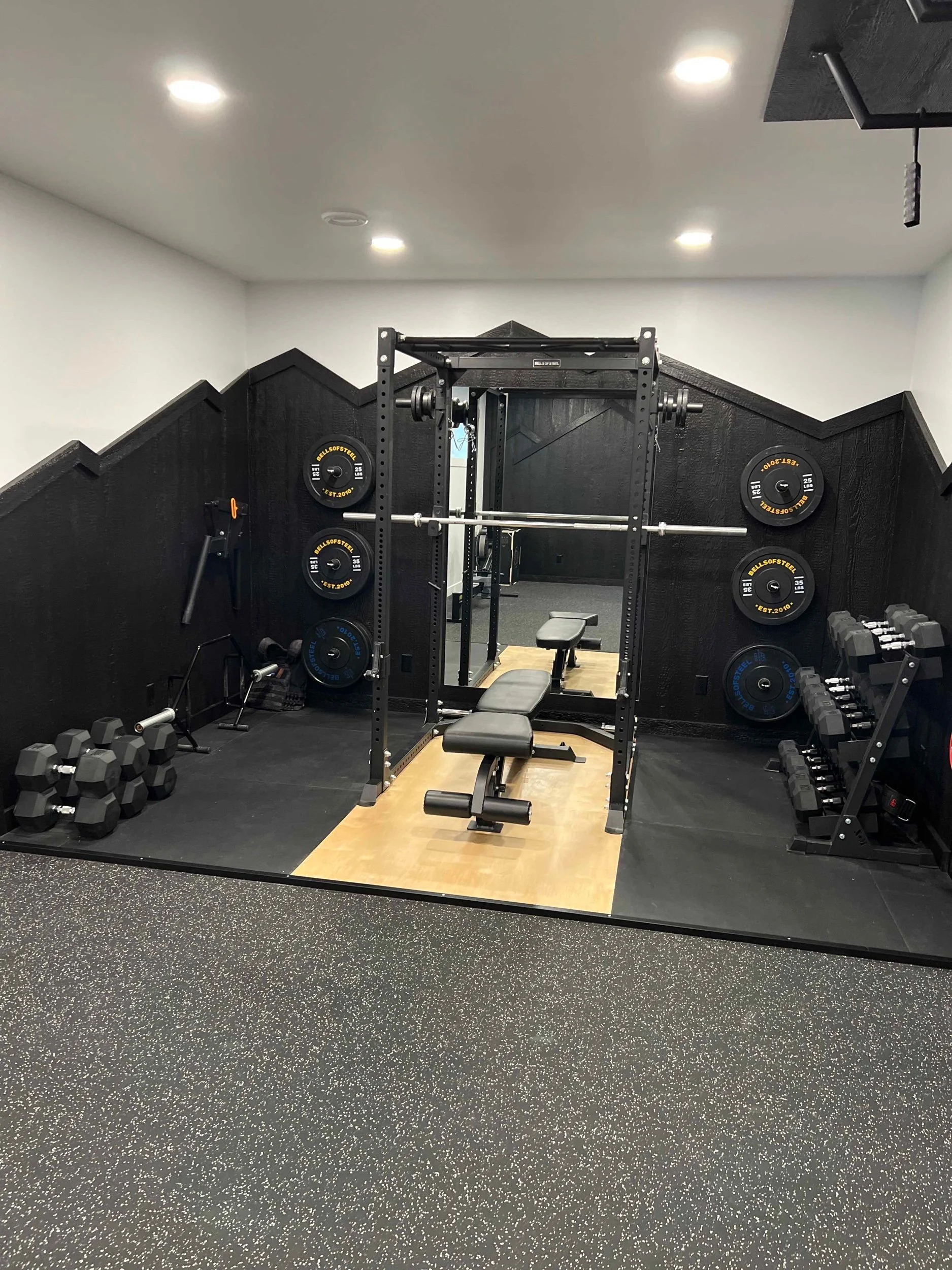 Golden Larch Design’s Home Gym — “The Showroom”, is the showcase for our Original Design option. If you like what you see, let us take the wheel and create a custom home gym unique for your space, with a similar style.
