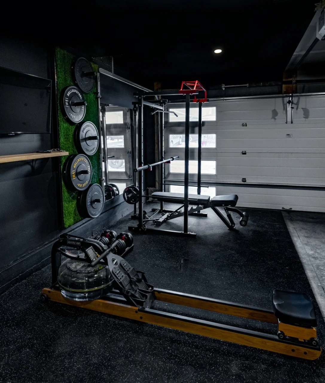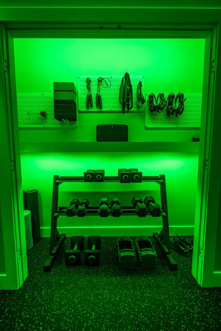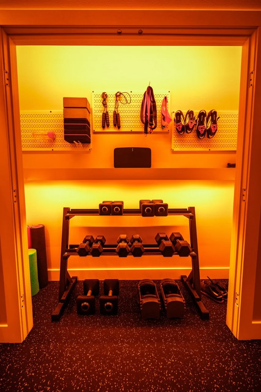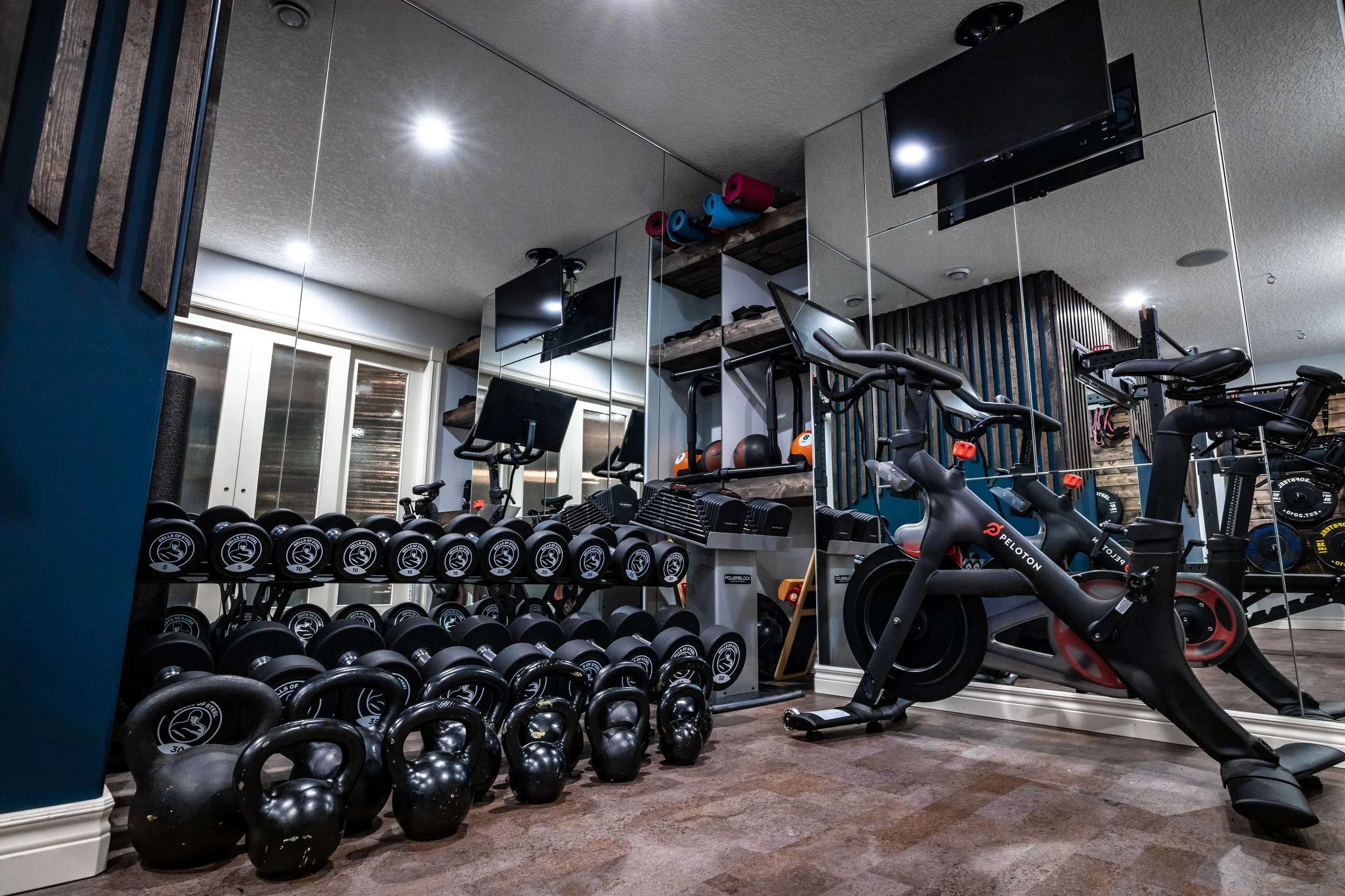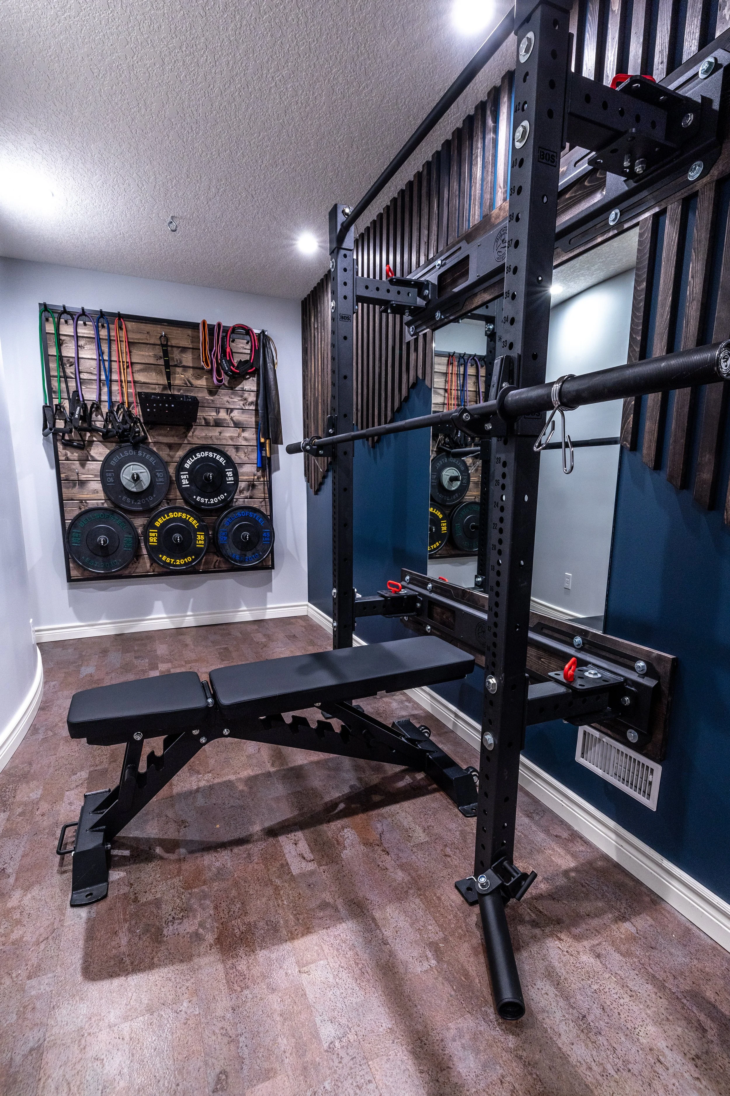 Golden Larch Design’s Home Gym — “The Showroom”, is the showcase for our Original Design option. If you like what you see, let us take the wheel and create a custom home gym unique for your space, with a similar style.