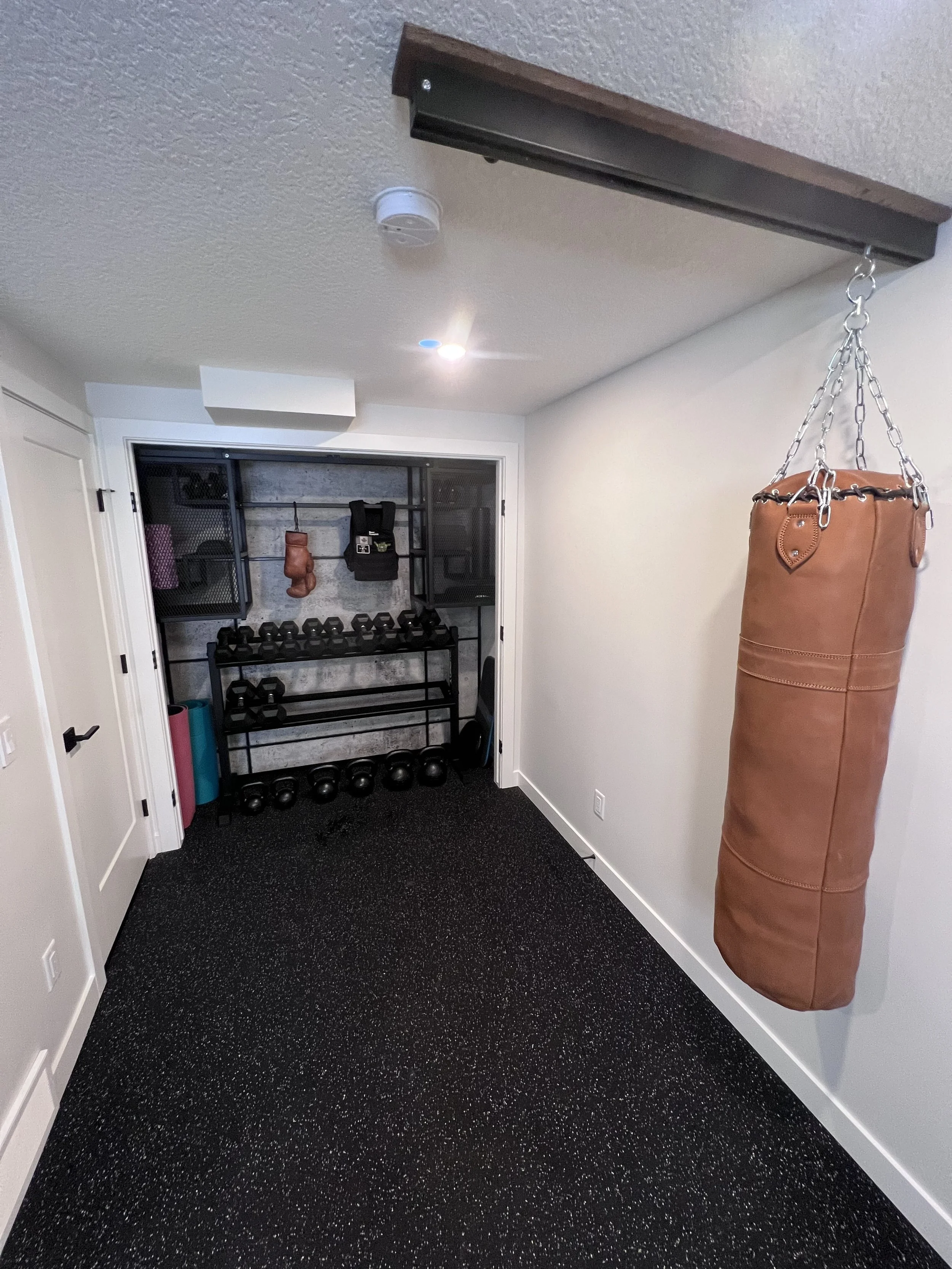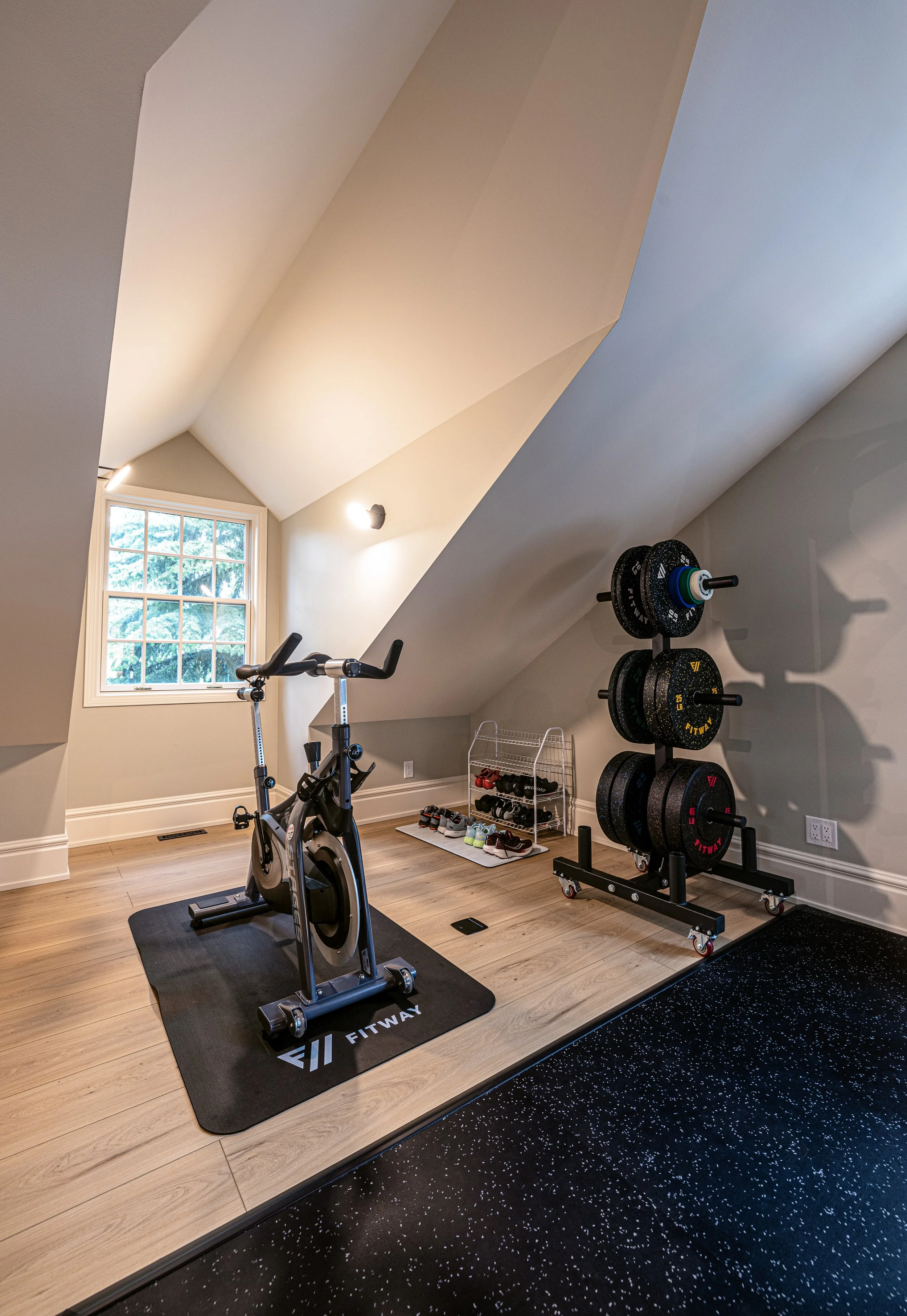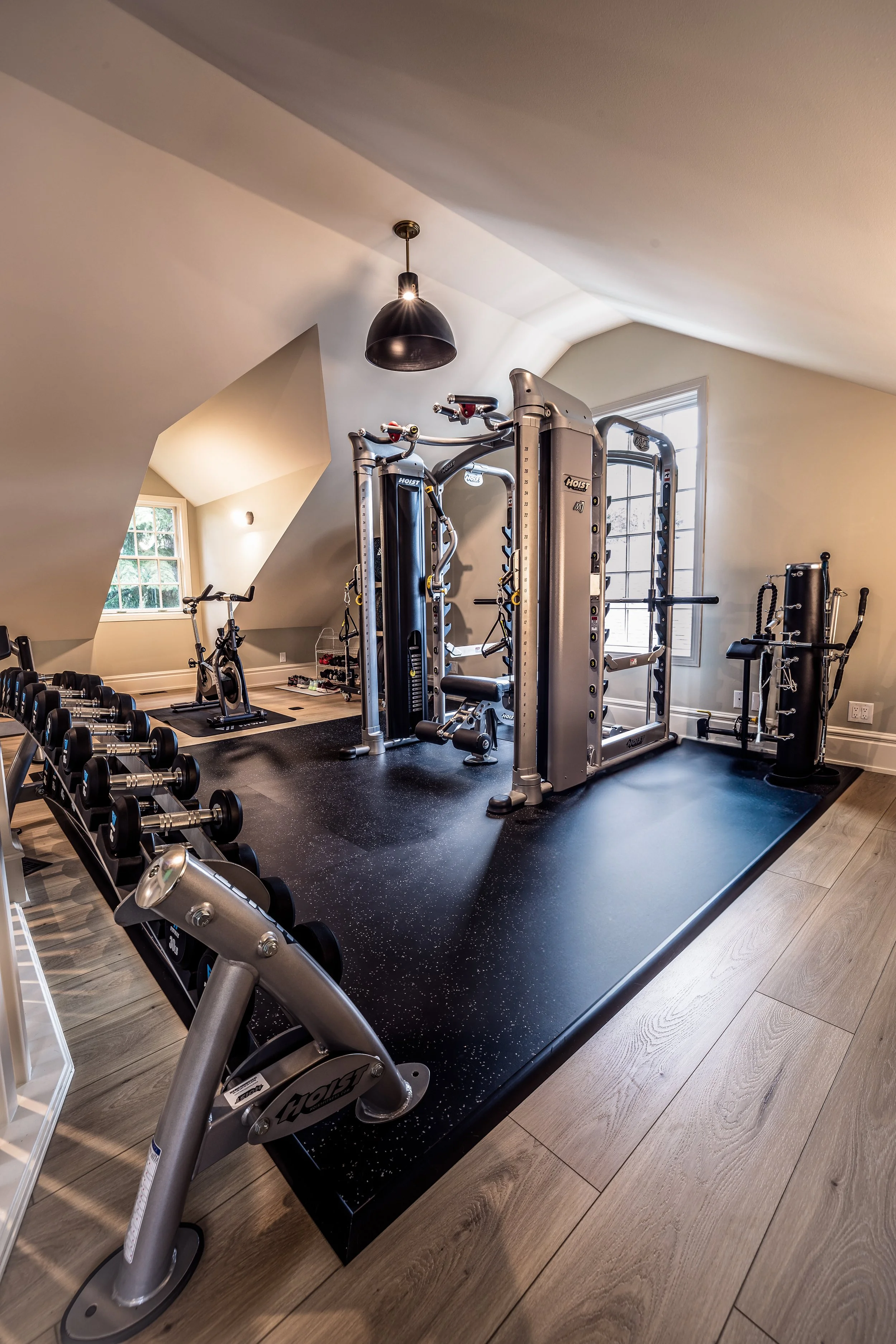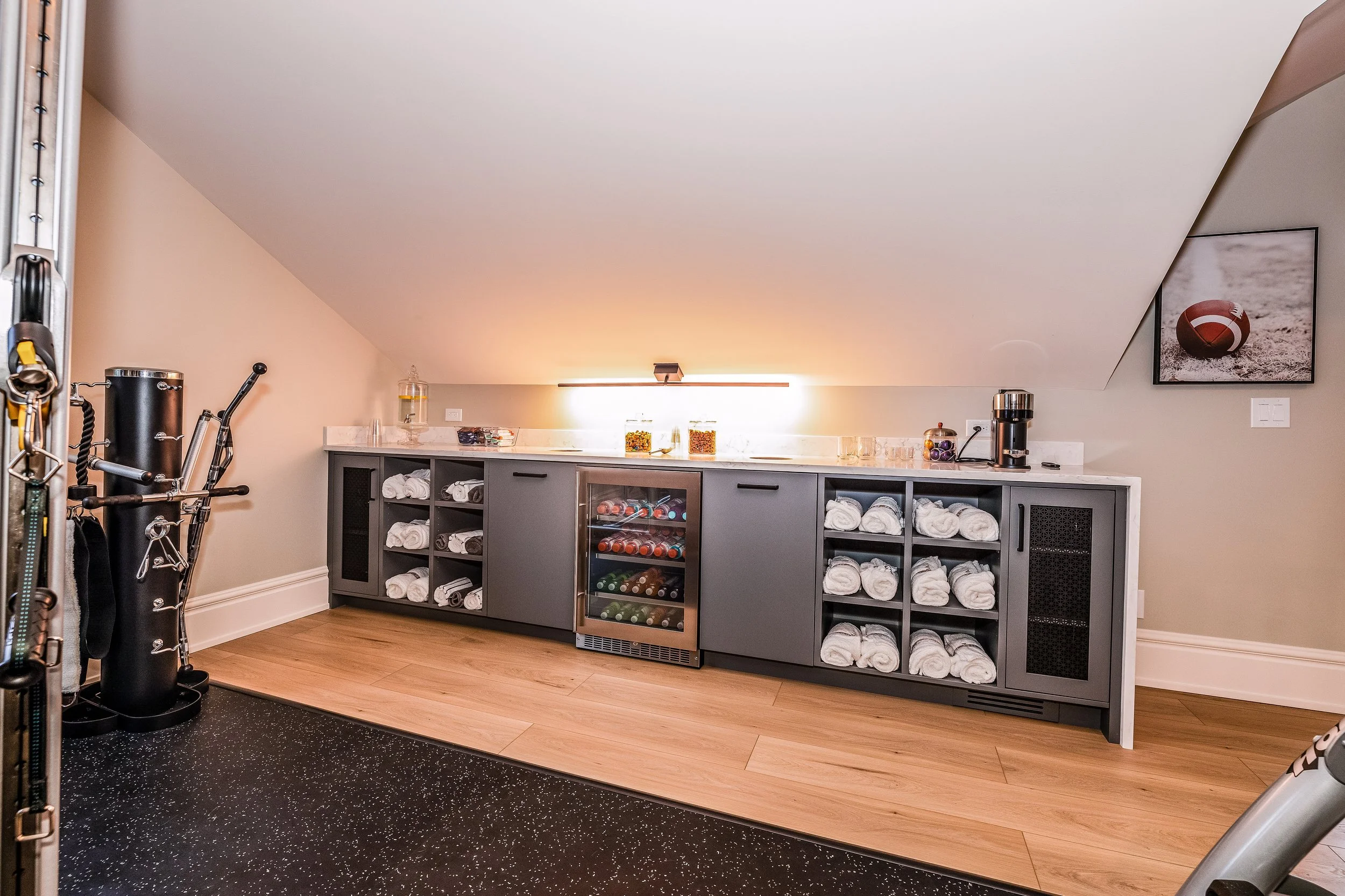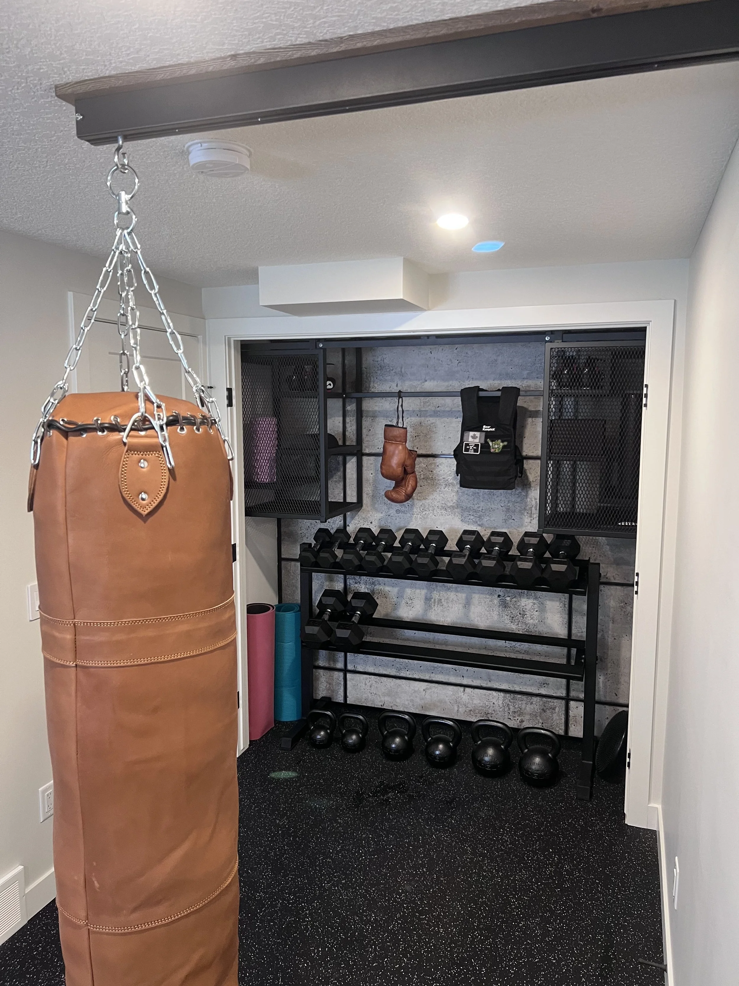 Golden Larch Design’s Home Gym — “The Showroom”, is the showcase for our Original Design option. If you like what you see, let us take the wheel and create a custom home gym unique for your space, with a similar style.