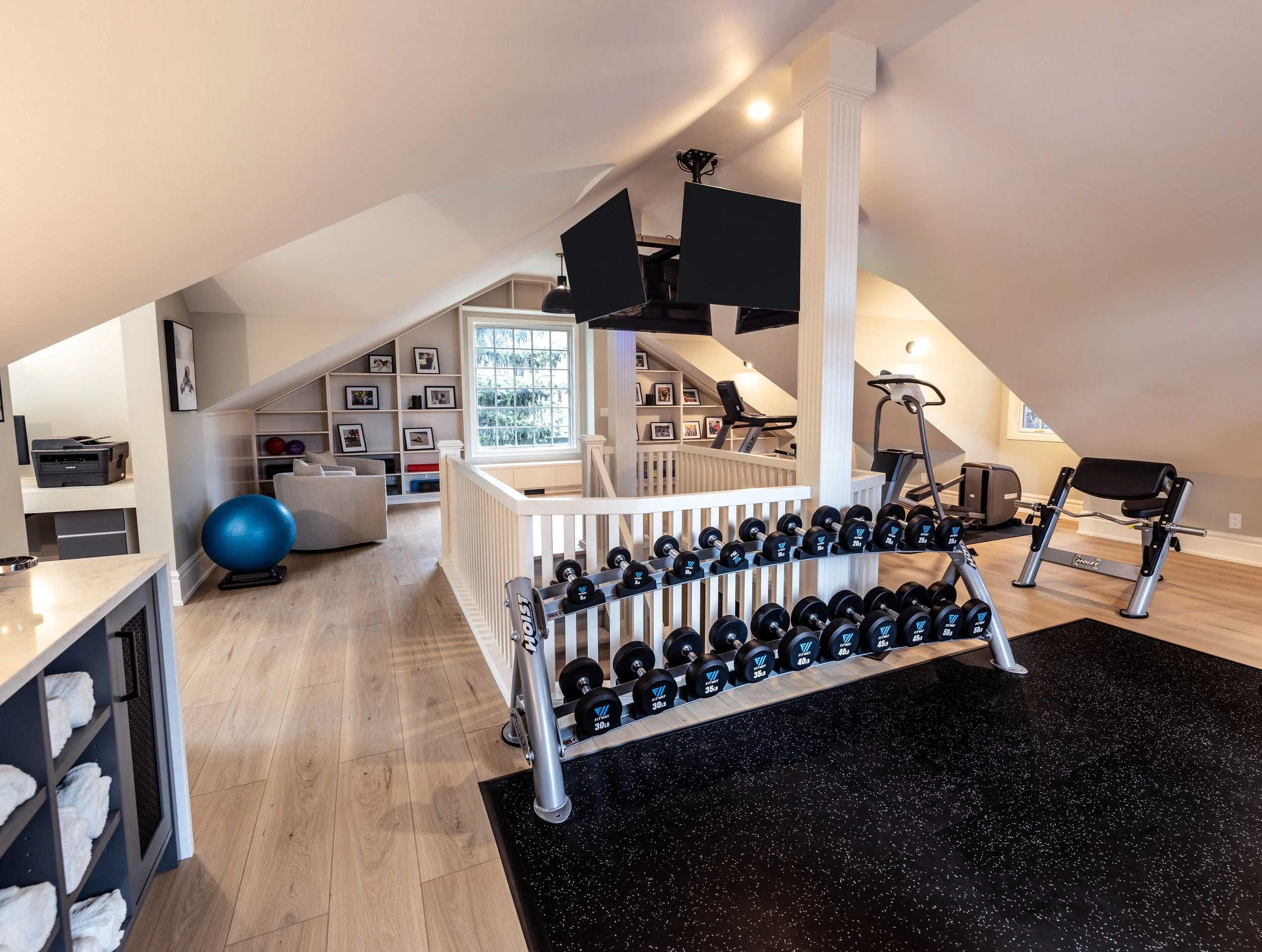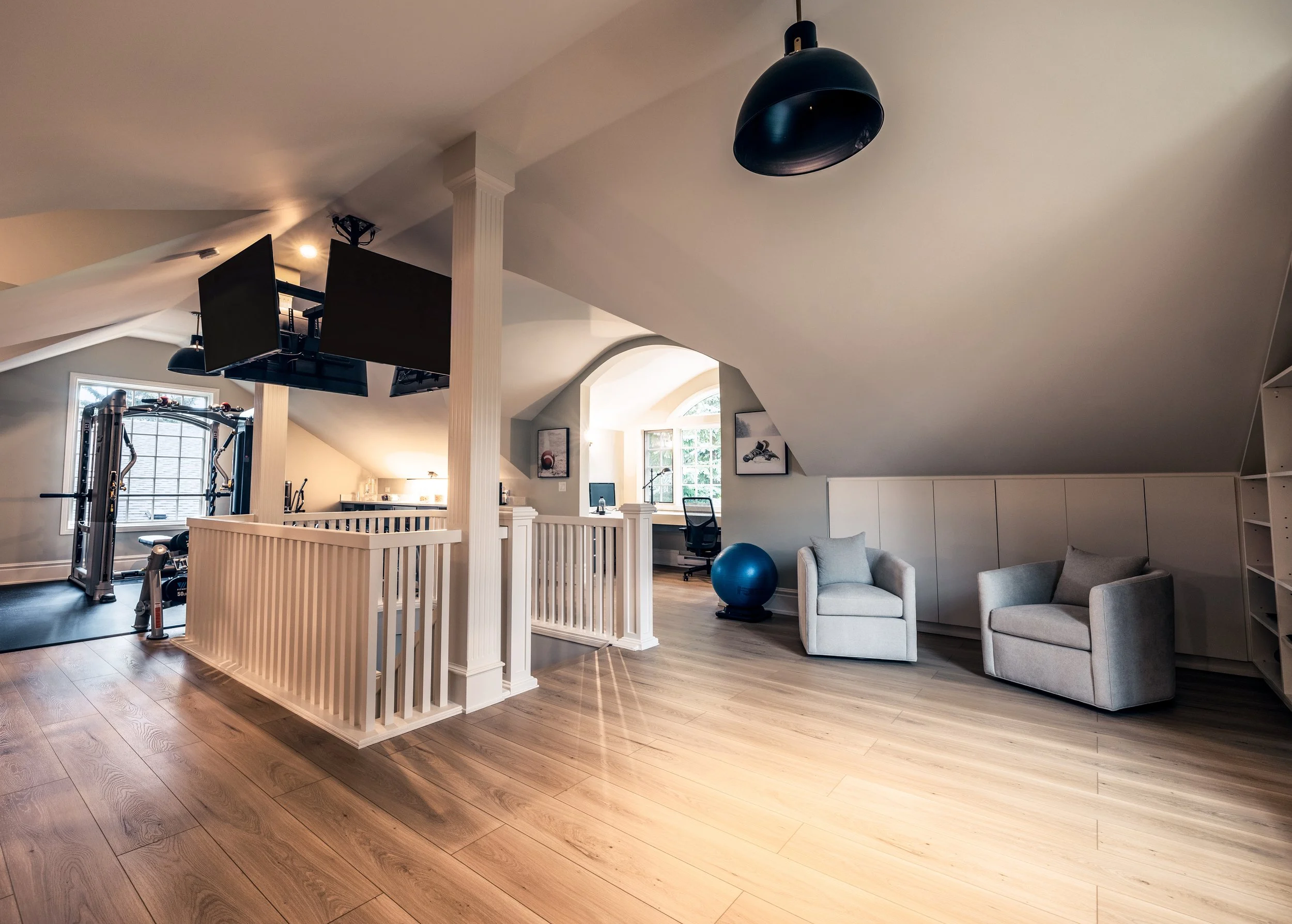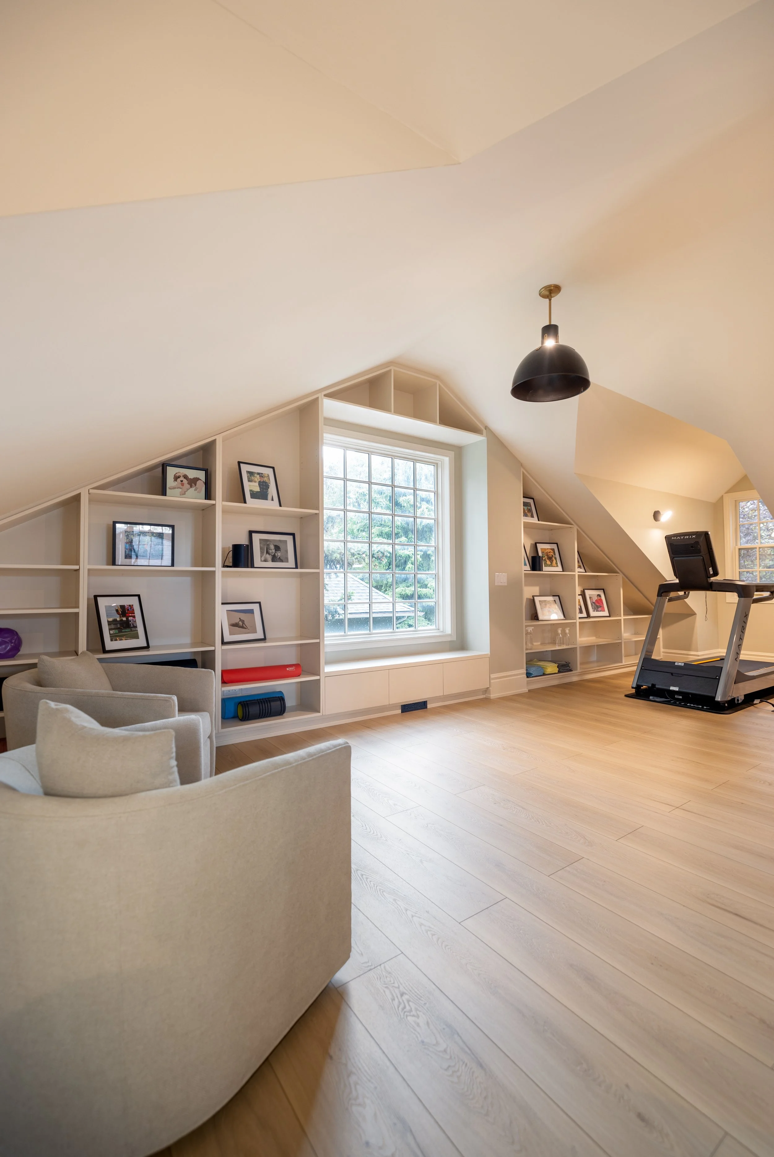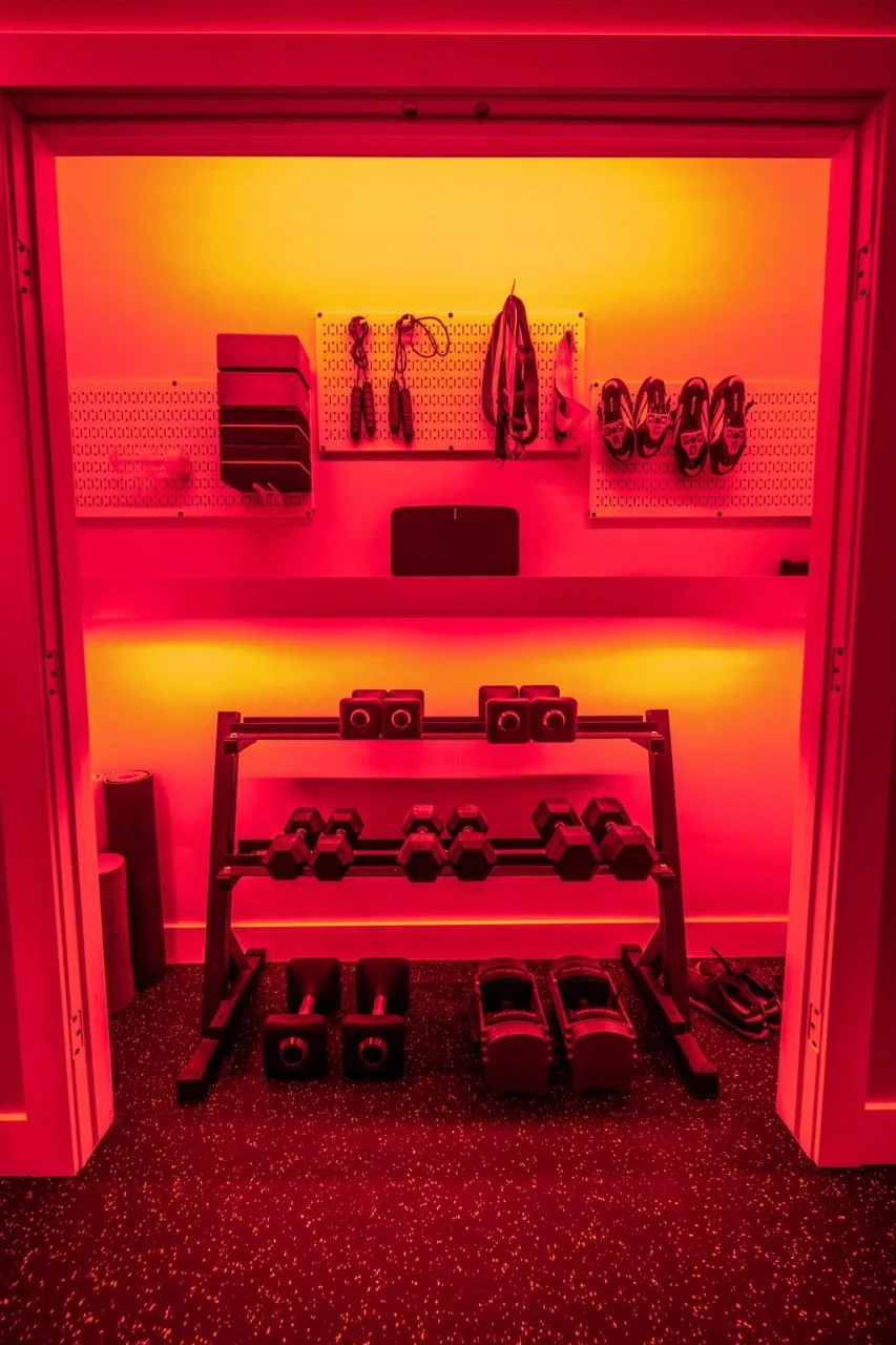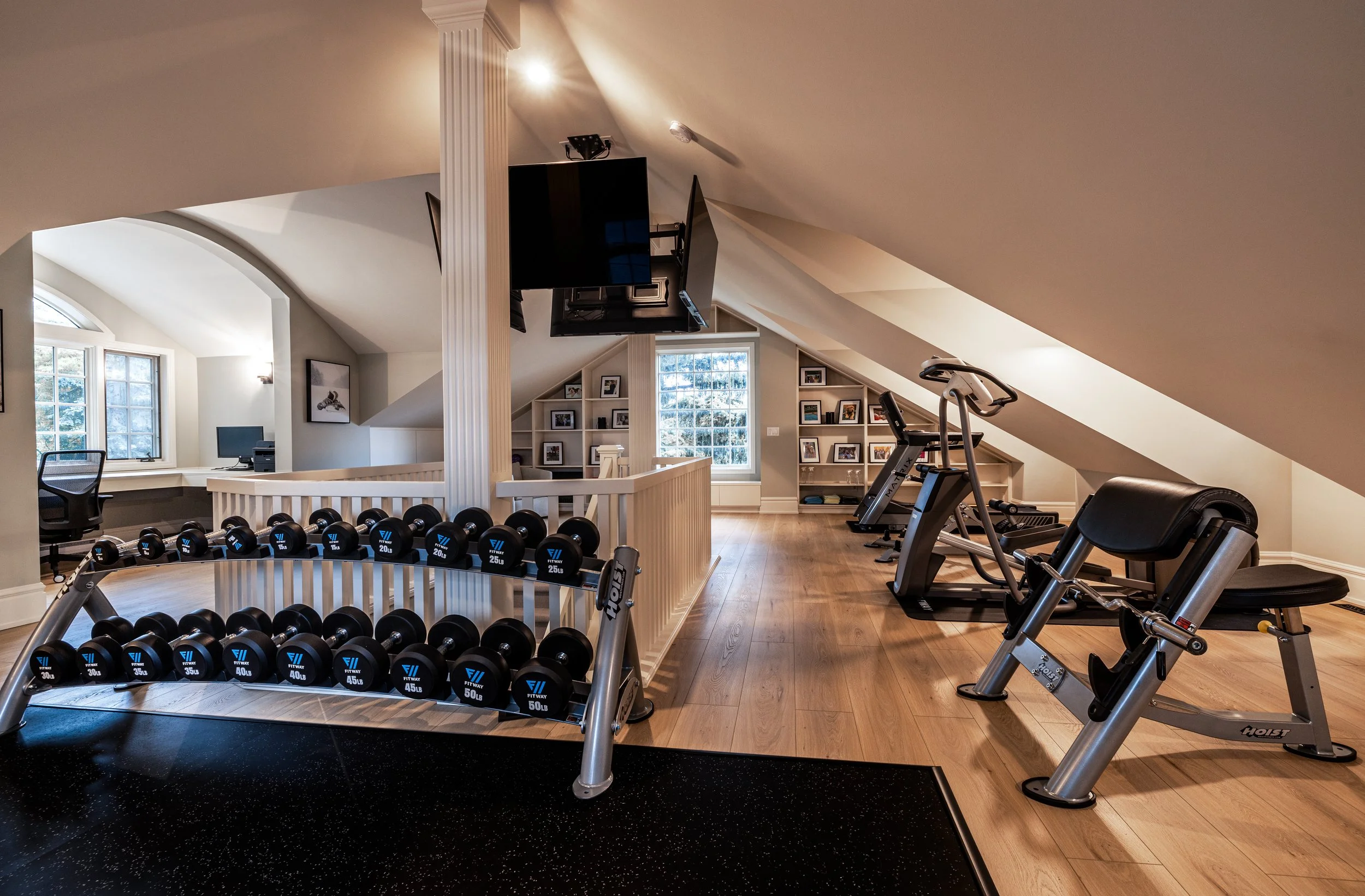Golden Larch Design’s Home Gym — “The Showroom”, is the showcase for our Original Design option. If you like what you see, let us take the wheel and create a custom home gym unique for your space, with a similar style.